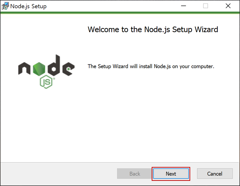 2. "다운로드"폴더에서 다운로드한 "node-v14.17.4-x64.msi"파일을 클릭하여 실행시킵니다. 인스톨러(installer)가 실행됩니다. "Next"버튼을 클릭합니다.