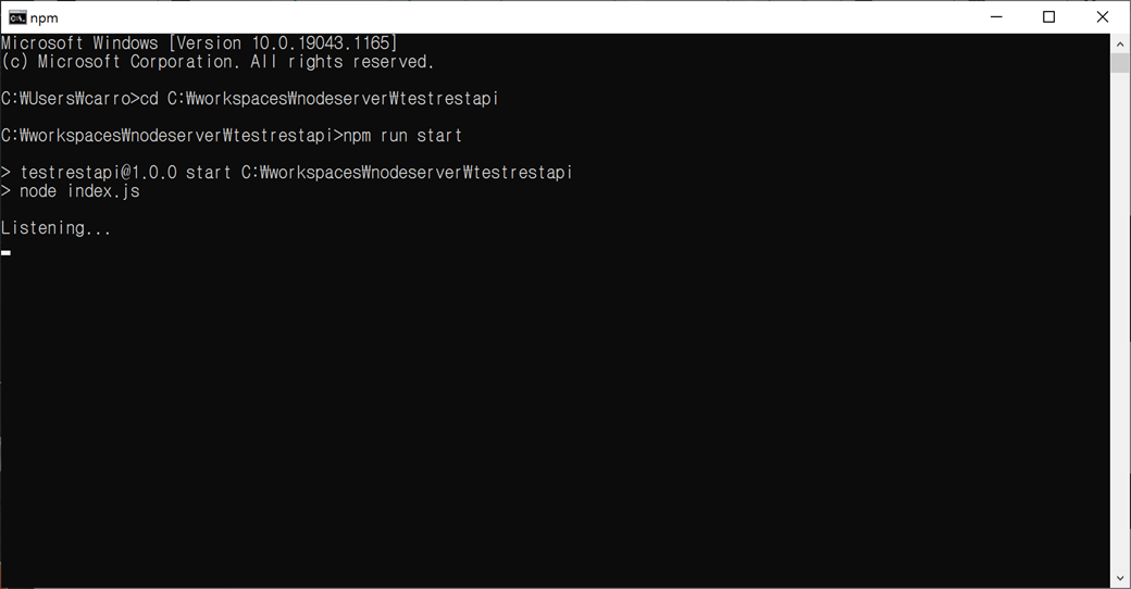 4. npm run 명령어로 실행할 수 있습니다.