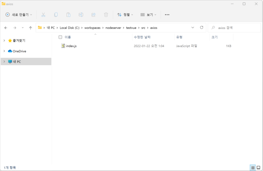 1. C:\workspaces\nodeserver\testvue\src 폴더에 axios 폴더를 생성하고 index.js 파일을 생성합니다.