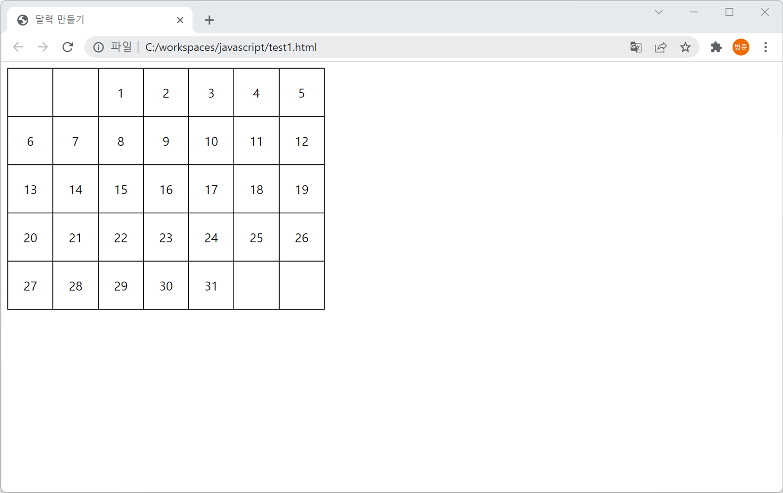 table 태그로 주 수만큼 for 문을 실행하여 레이아웃(layout)을 만들겠습니다.
