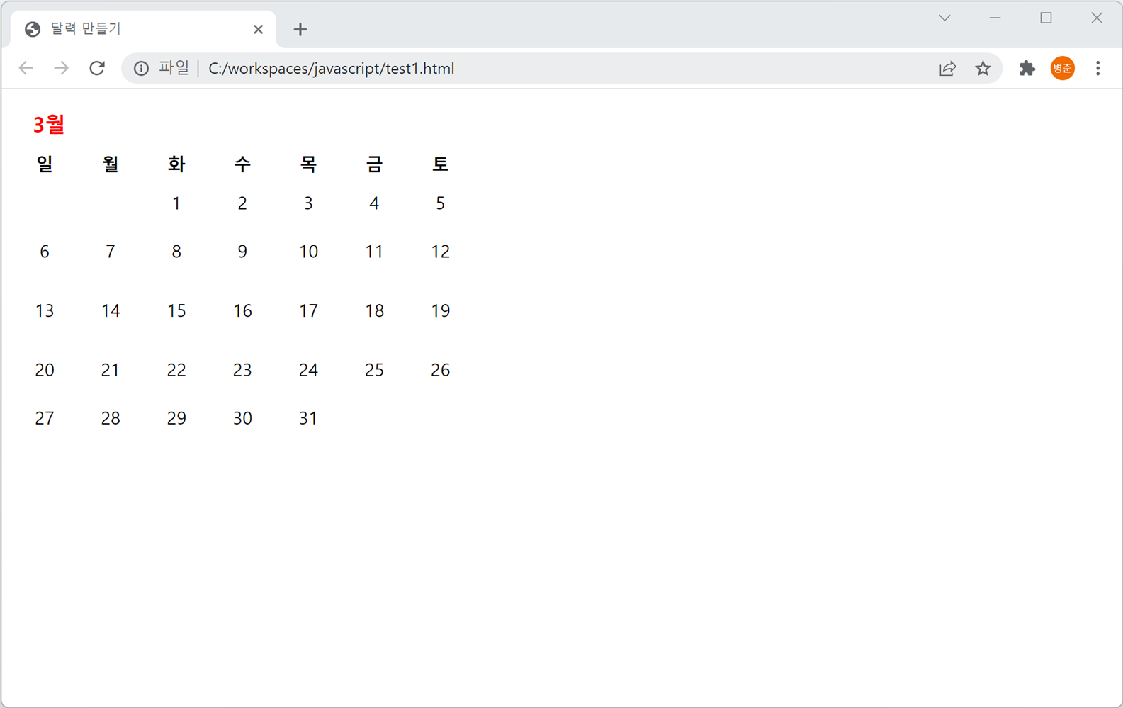 JavaScript의 Date 객체를 사용하여 달력(Calendar)을 만들어 보겠습니다.