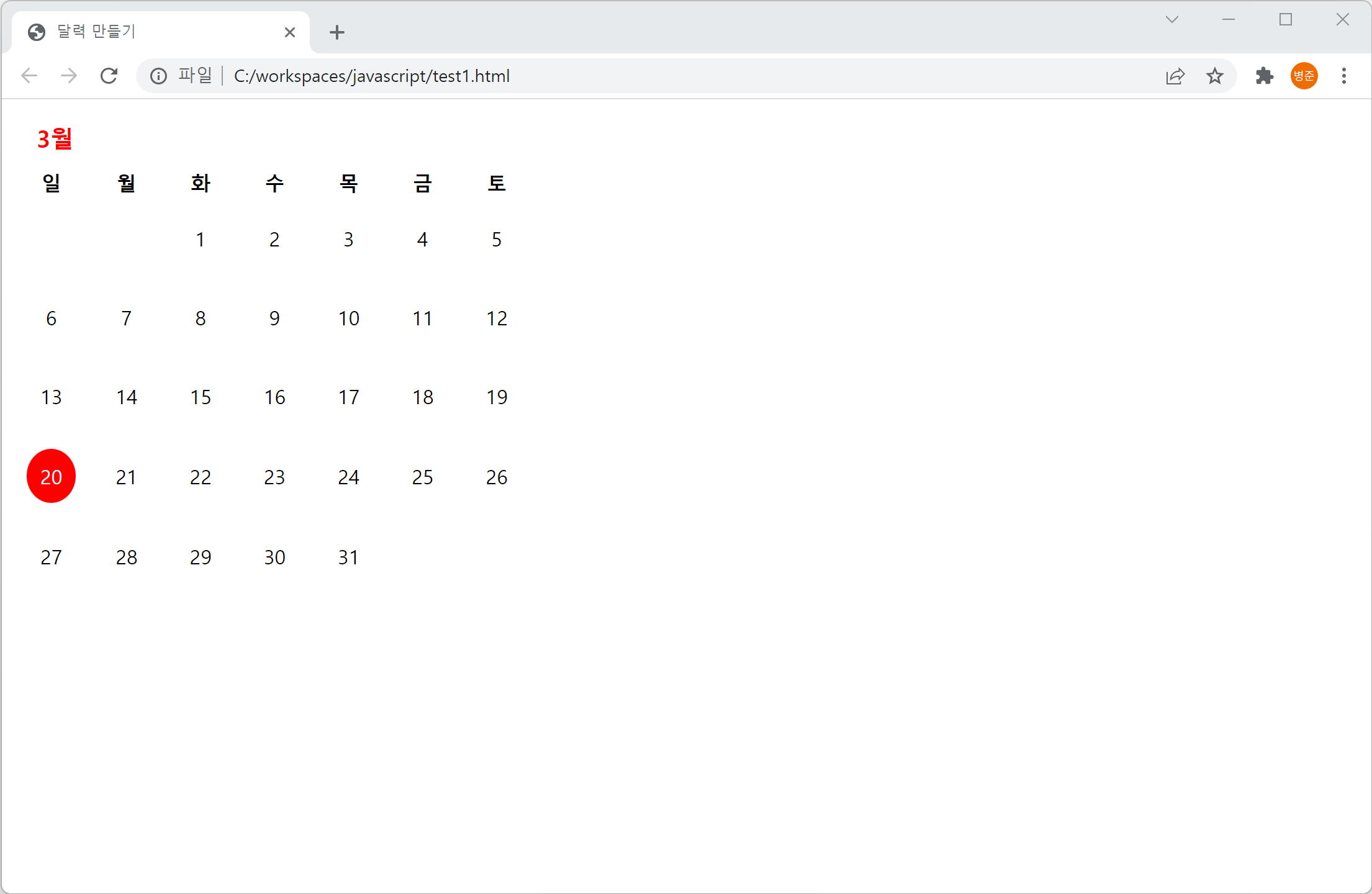 오늘 날짜를 붉은색 원으로 표시해 보겠습니다.