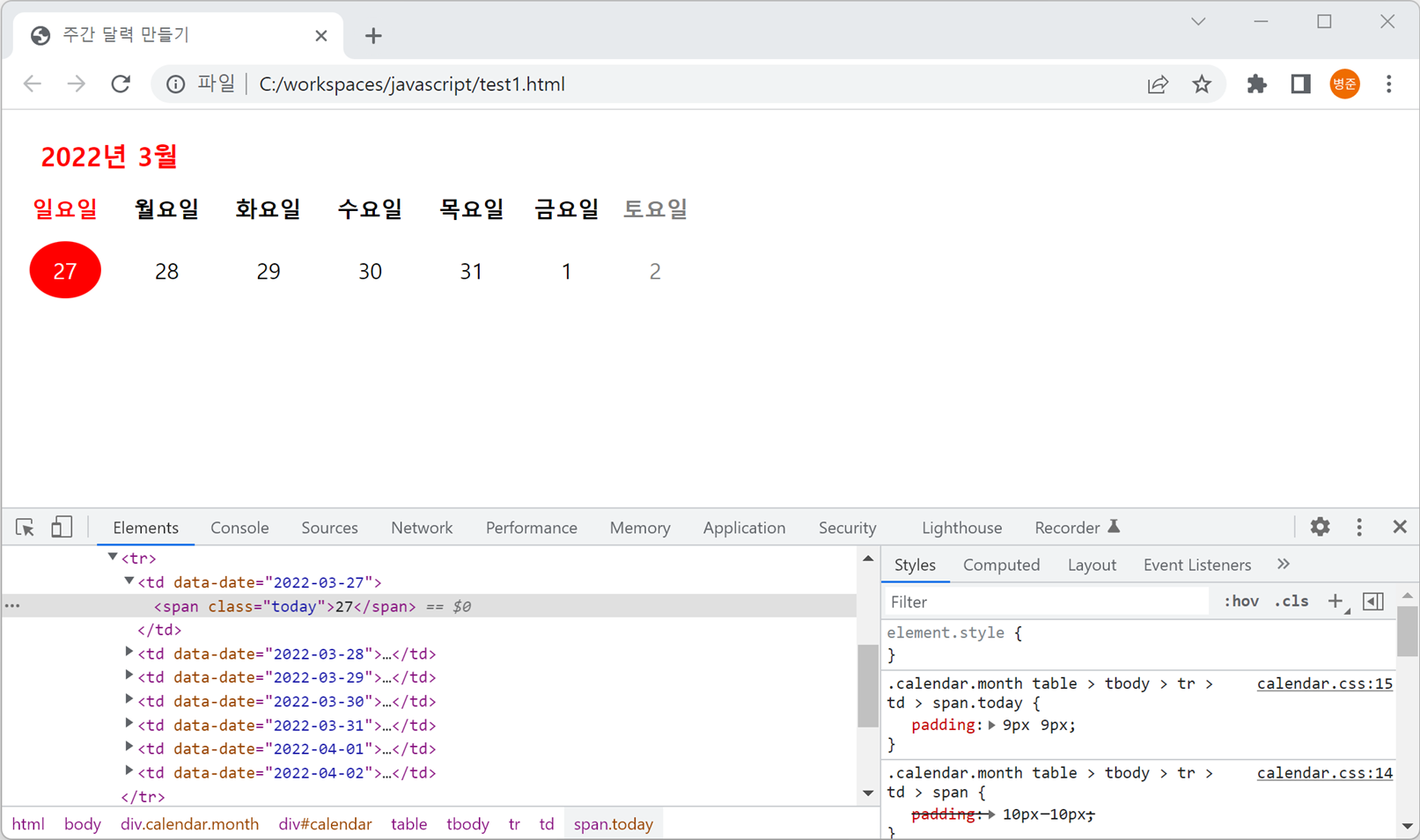 | JavaScript Calendar - 주간 달력 만들기 (주간 달력 생성 함수 사용), Weekly Calendar (0) | 2022.04.09 |