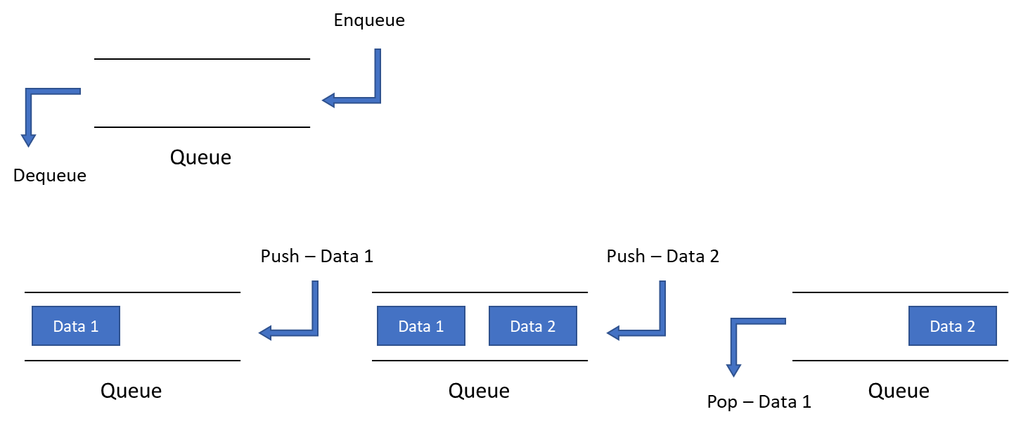 데이터를 넣는 함수 명을 push가 아닌 enqueue(인큐)로 데이터를 가져오는 함수 명을 pop이 아닌 dequeue(디큐)로 사용하셔도 됩니다.
