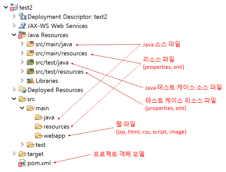 - pom(Project Object Model)는 프로젝트의 라이브러리 의존성(dependencies), 모듈(modules), 정보(properties), 저장소(repositories), 빌드(build) 등을 관리하는 관리 파일입니다.