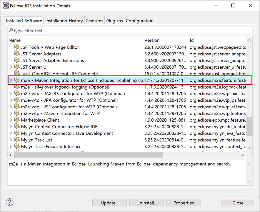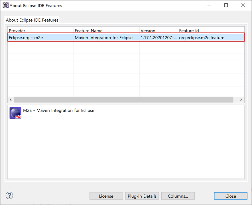 이클립스에서 통합된 메이븐(Maven)에 대한 설치 확인은 다음과 같습니다.