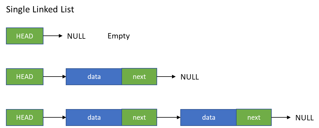 단일 연결 리스트(Single Linked List)는 자신과 연결된 다음 노드(Node)만 알 수 있습니다.