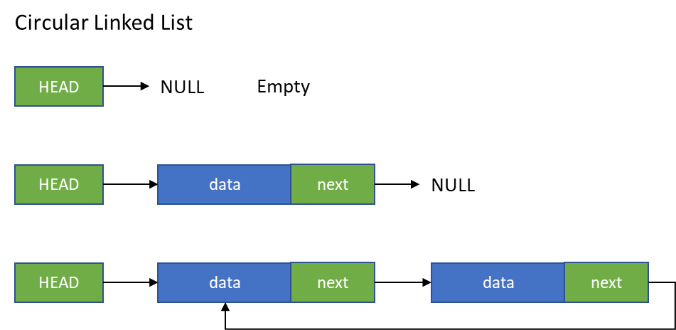 그리고 단일 연결 리스트(Single Linked List)에서 마지막 노드(Node)의 포인터를 첫 번째 노드(Node)와 연결한 것을 원형 연결 리스트(Circular Linked List)라고 합니다.