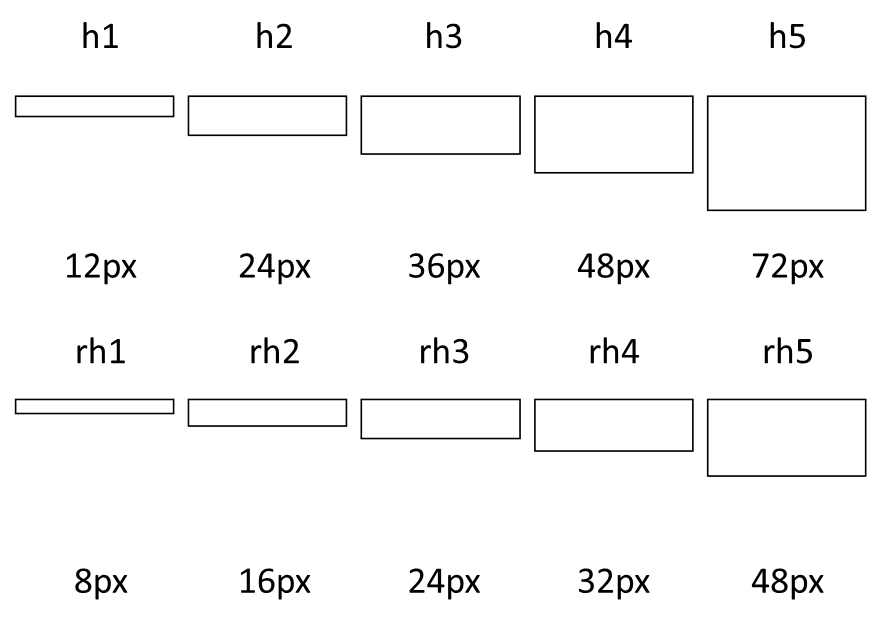 아래 표는 HTML 요소(element)의 폰트 크기(font-size) 속성 값이 16px(12pt) 일 경우입니다.
