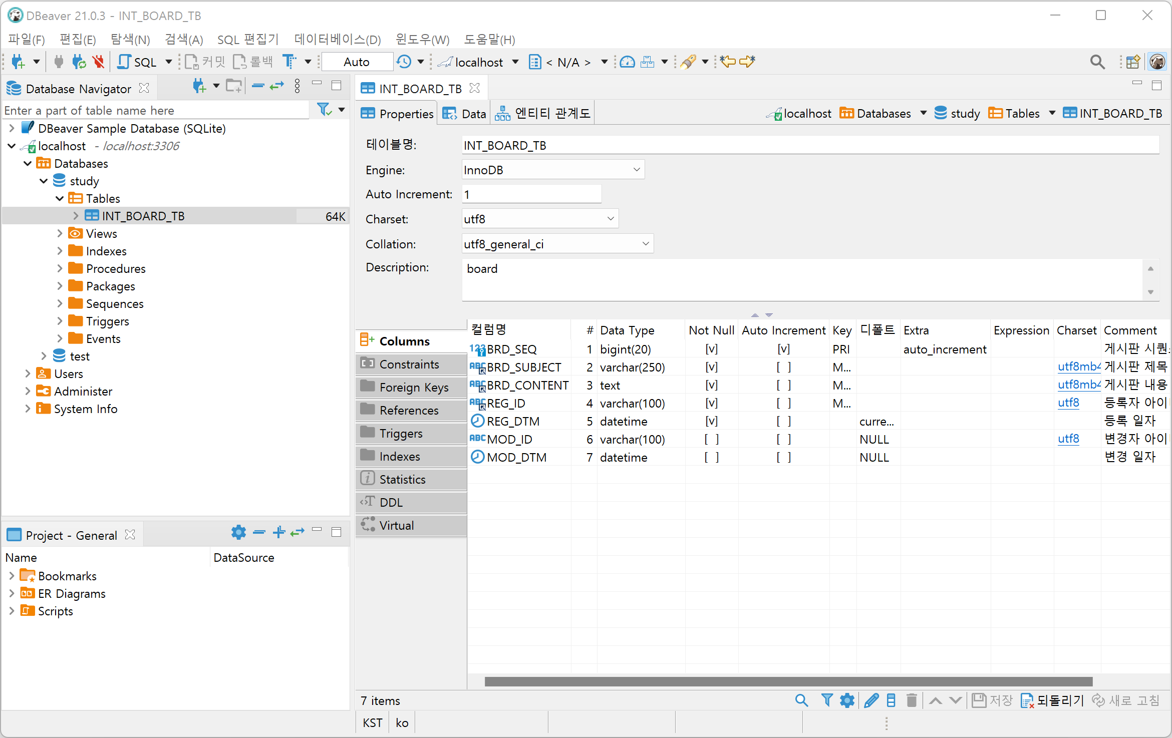 2. Table은 INT_BOARD_TB로 생성하겠습니다.