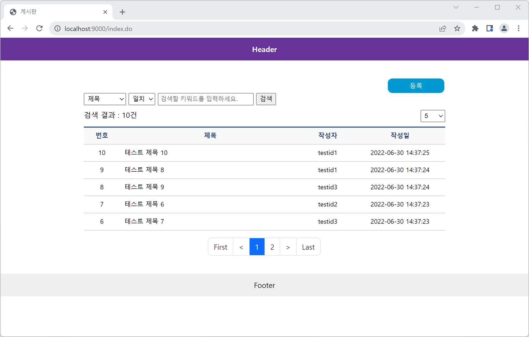 4. 게시물 리스트에서 11번인 "테스트 제목 111"을 클릭한 후 삭제 버튼을 누릅니다.