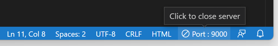그리고 Visual Studio Code의 Status Bar(상태 표시줄)에도 "Port : 9000"으로 변경되어 표시됩니다.