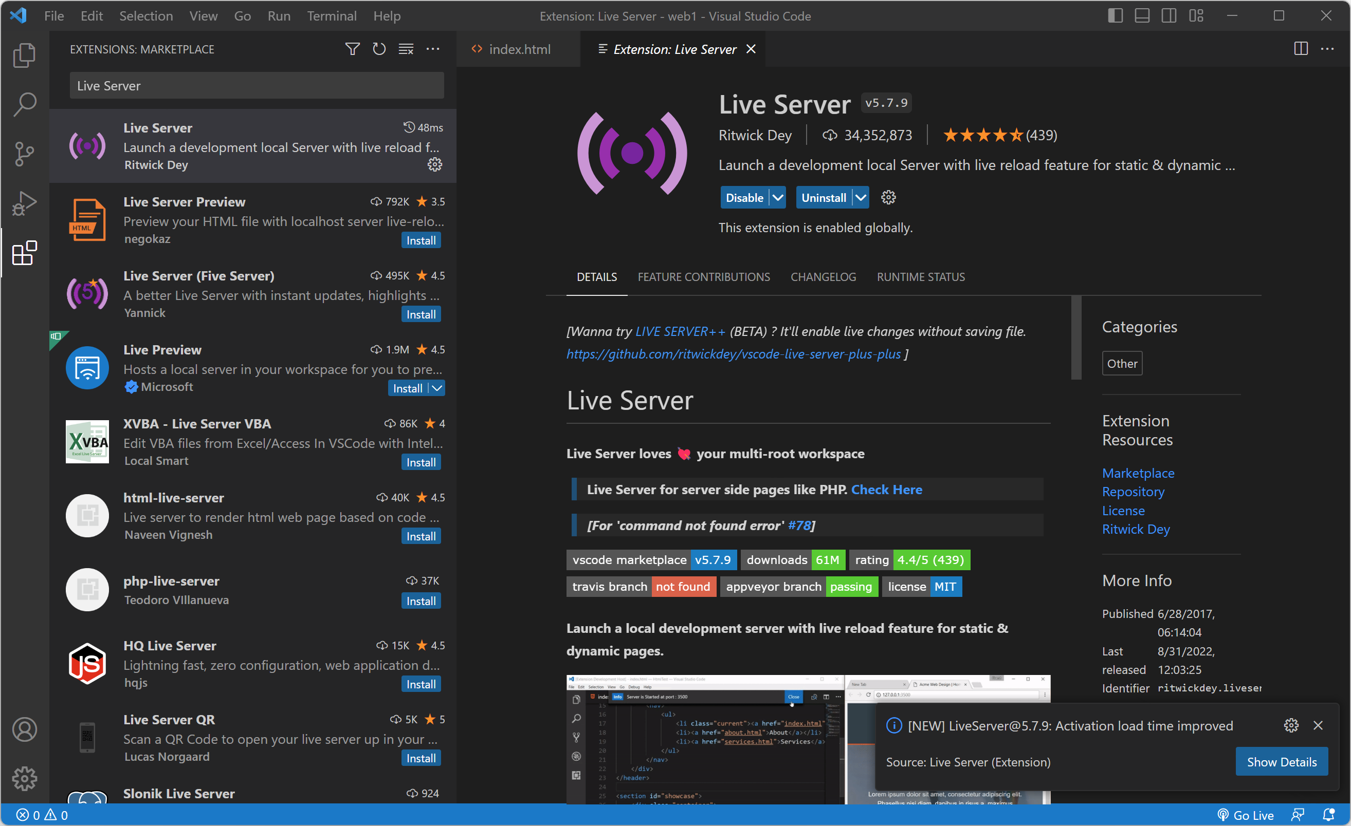 Live Server는 Open Source로 GitHub에 오픈되어 있습니다.