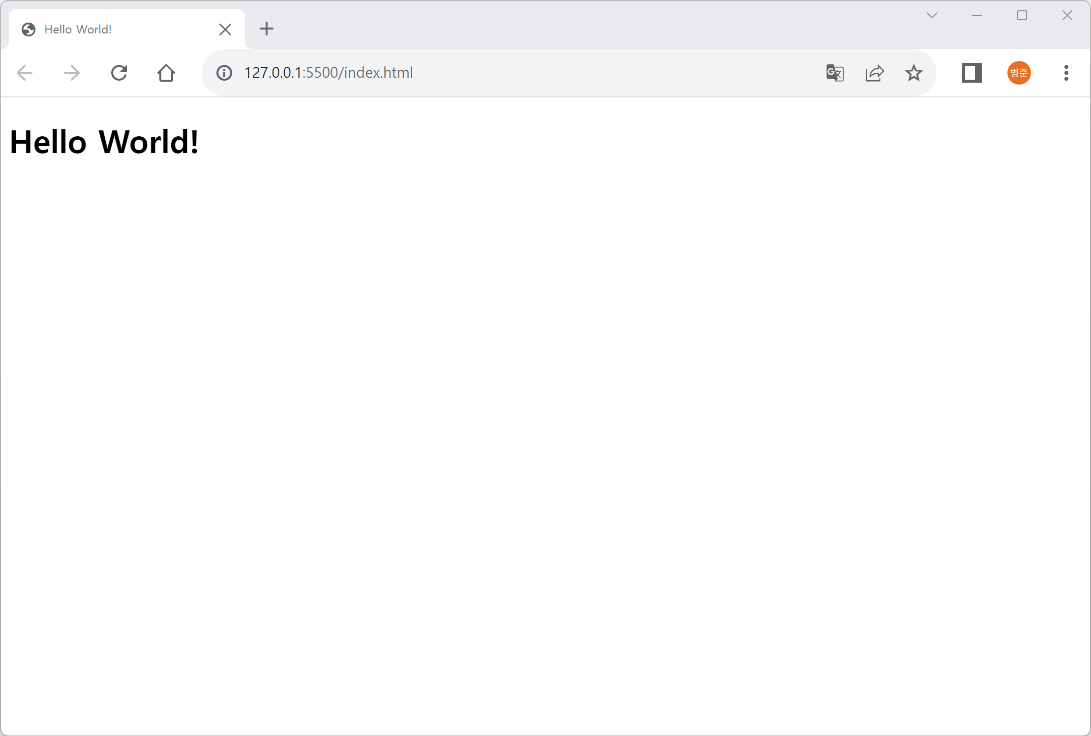 이전 디버깅(Run(실행) > Start Debugging(디버깅 시작))과 다르게 index.html 파일(file:///C:/workspaces/webstudys/web1/index.html)이 아닌 URL(http://127.0.0.1:5500/index.html)로 실행됩니다. 즉 웹 서버가 실행된 겁니다.