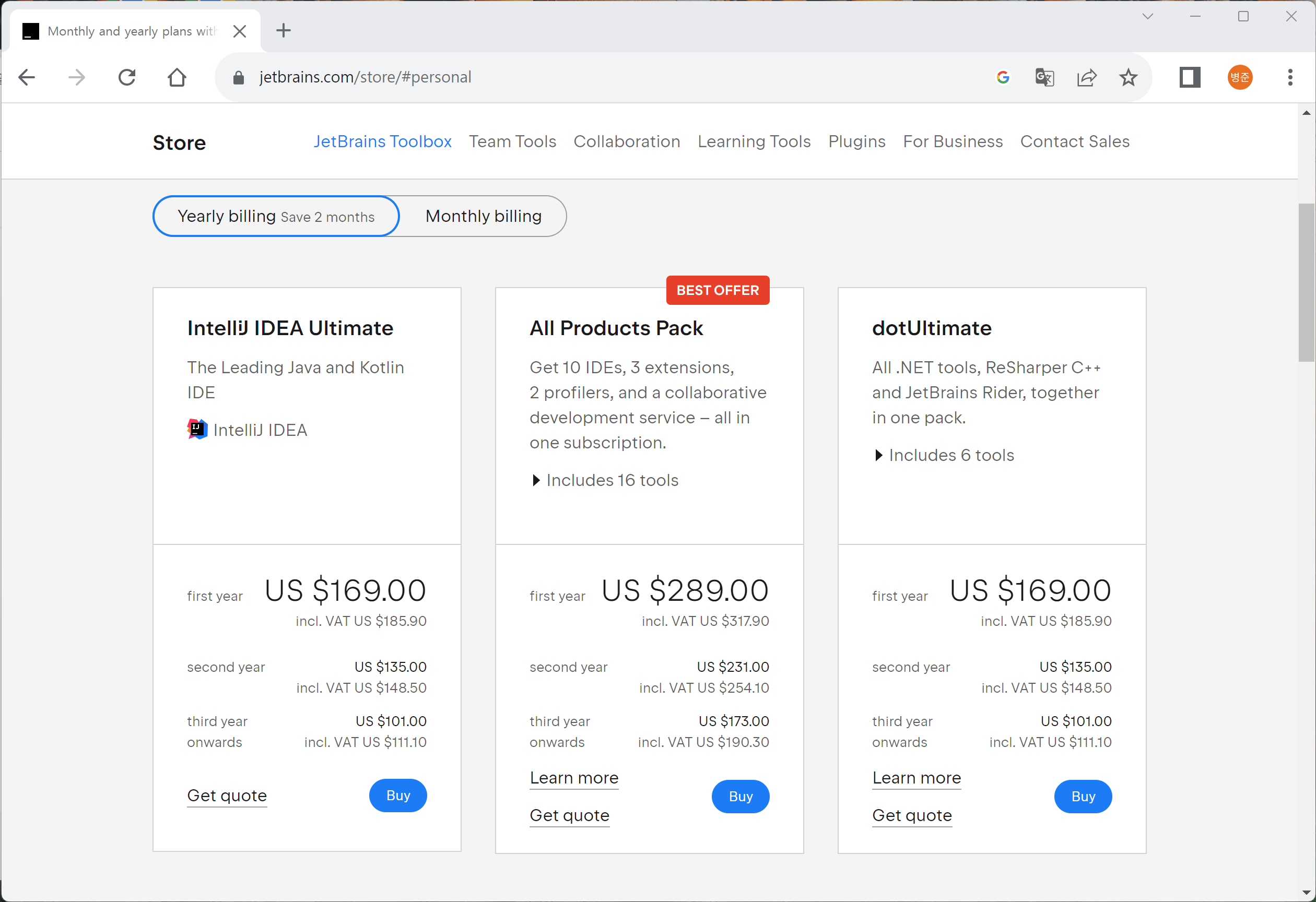 이후에는 라이선스 구매해서 등록해야 사용할 수 있습니다. 현재 개인 라이선스 비용은 1년에 169달러입니다.