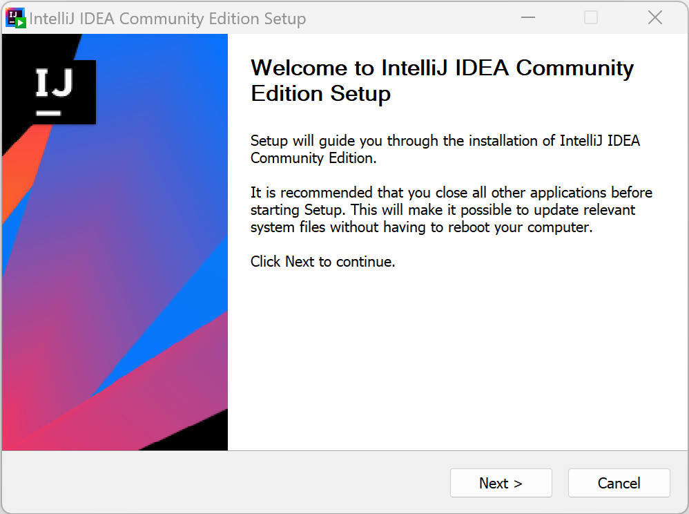 그러면 Installer가 실행됩니다. "Next >" 버튼을 누릅니다.