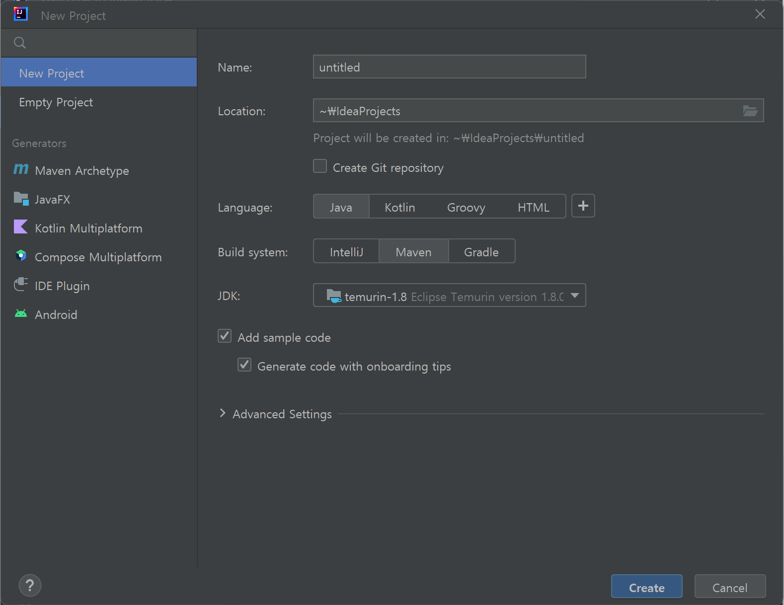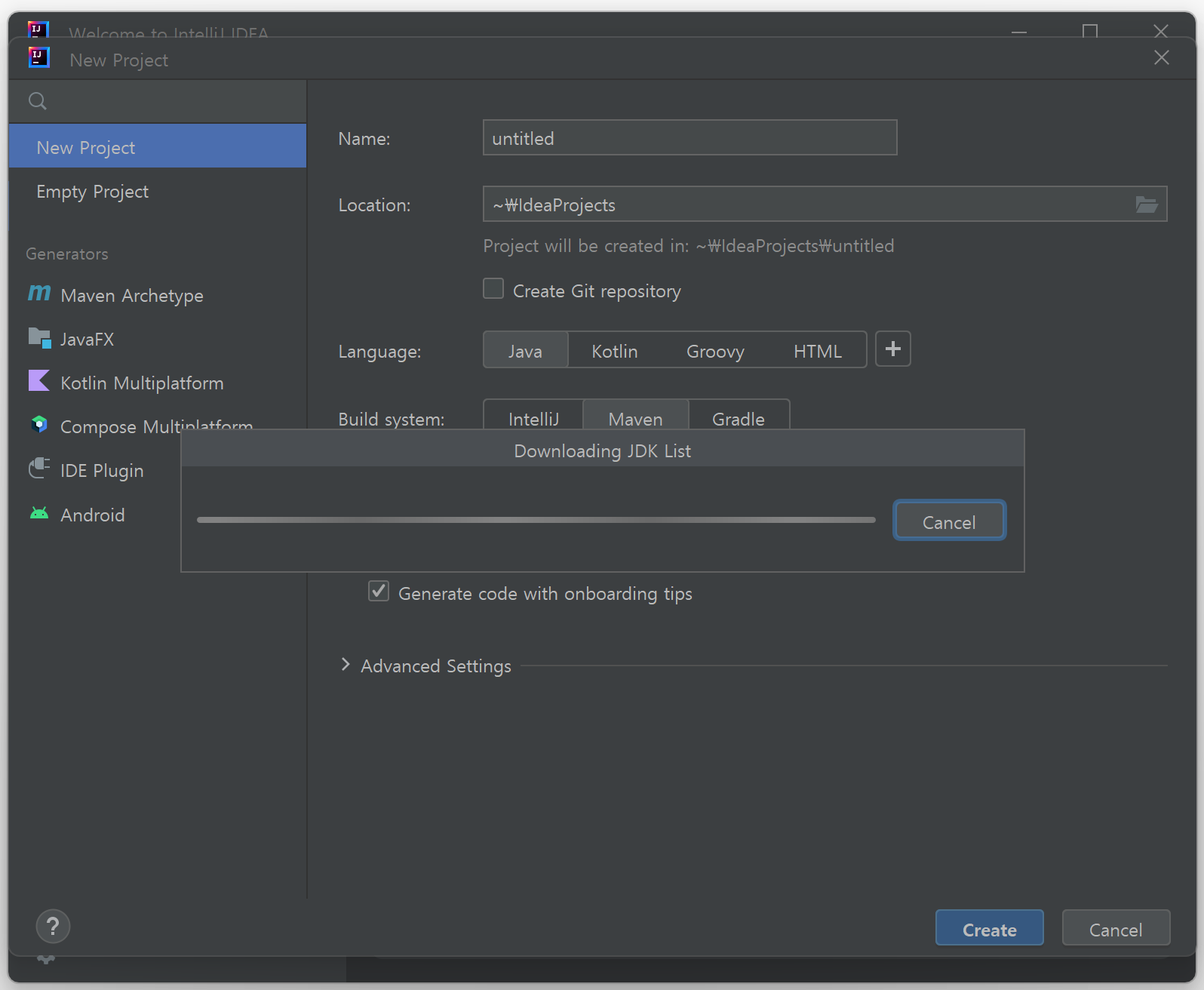 New Project에서 JDK 설정