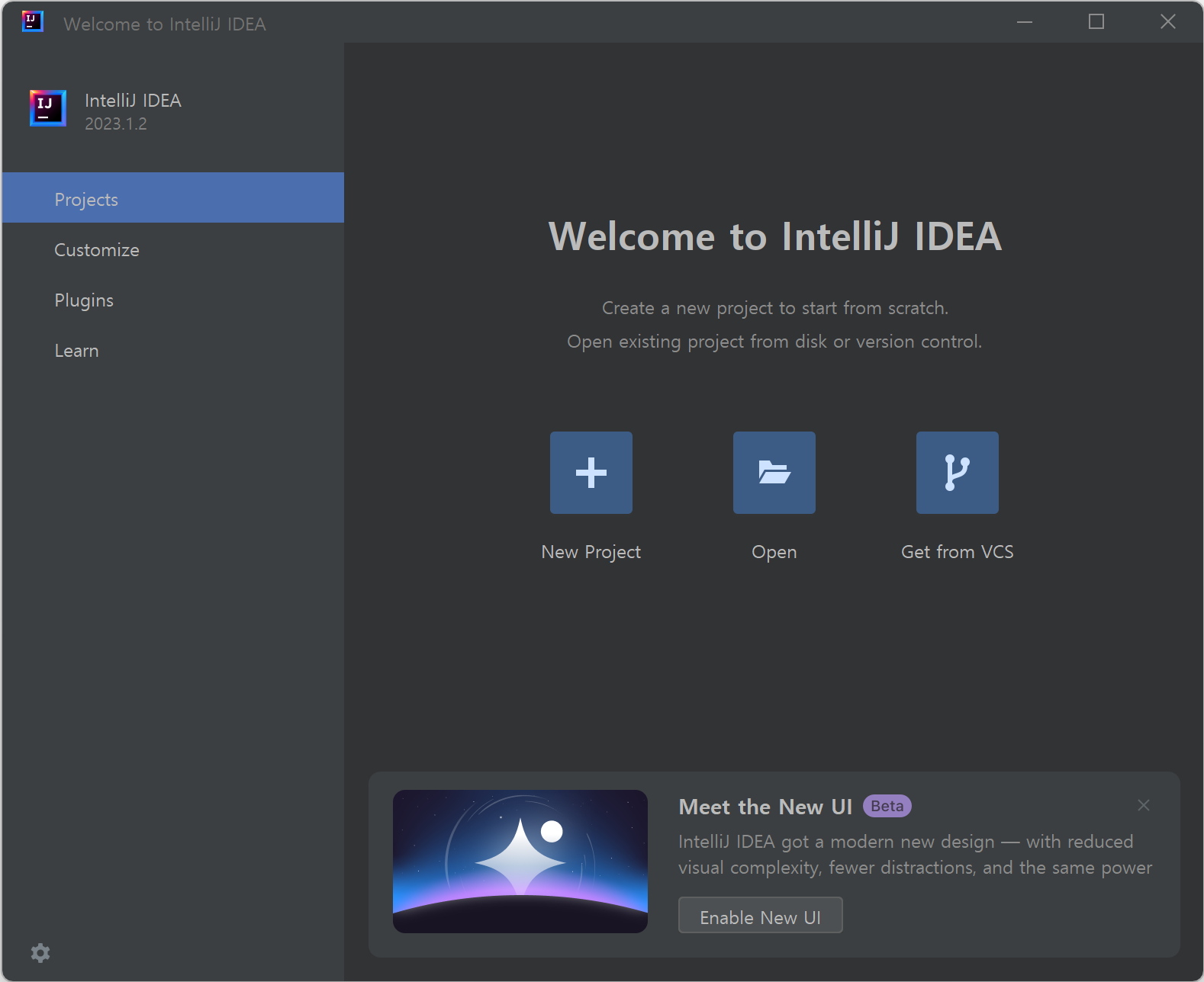 1. "New Project"를 클릭합니다.