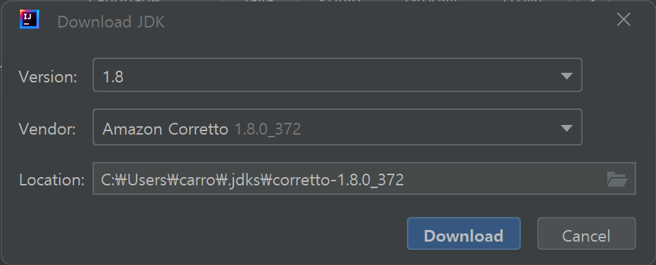 여러분의 프로젝트 환경에 맞게 JDK 버전을 선택하시기 바랍니다.