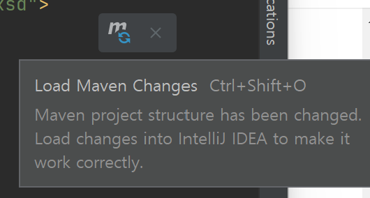 오른쪽 상단에 있는 "Load Maven Changes" 버튼을 누르면 Maven이 업데이트됩니다.