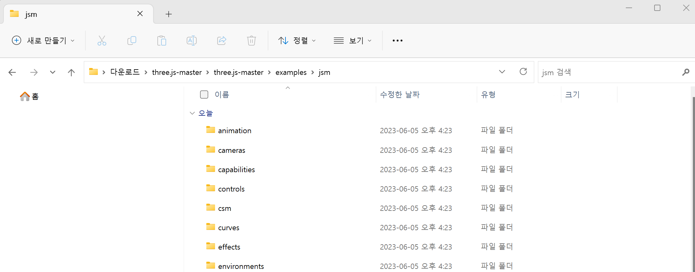 다운로드한 three.js-master.zip 압축 파일을 풉니다.