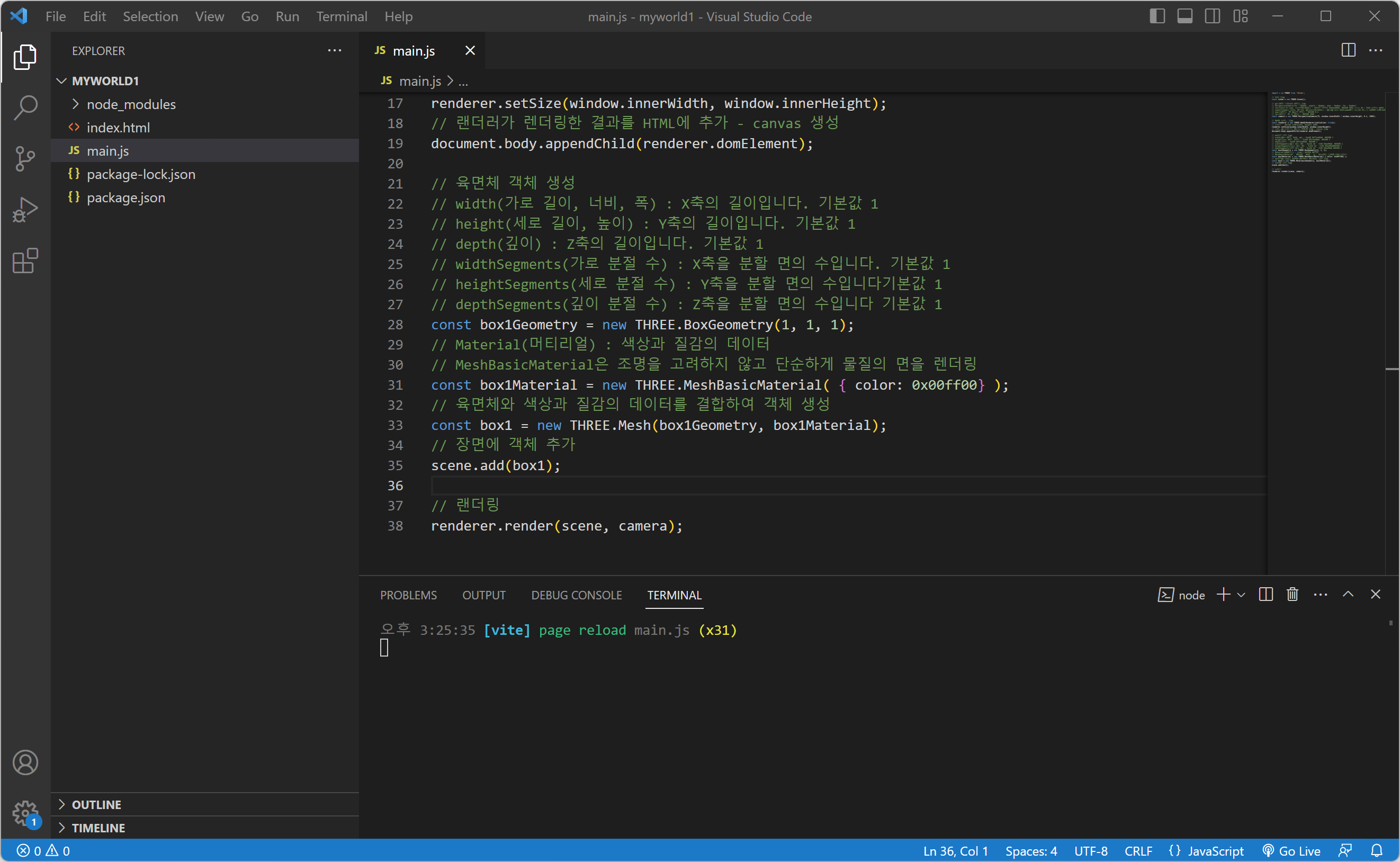 main.js를 저장하면 Vite(비트)가 자동으로 웹 브라우저를 갱신해 줍니다.