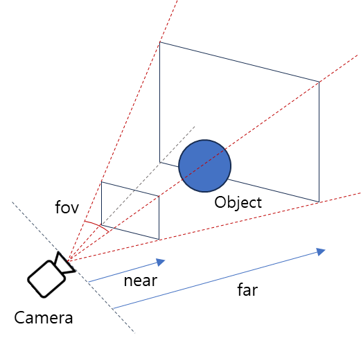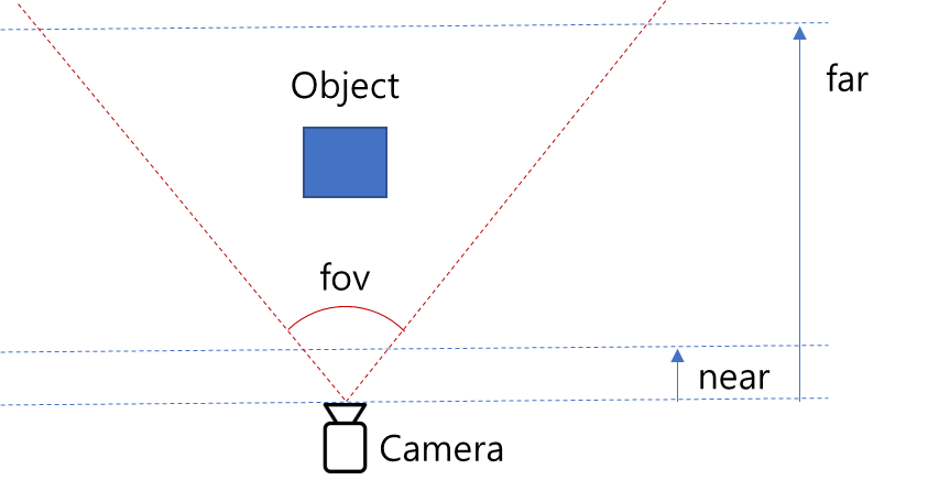 - near(니어, 카메라부터 가까운 거리) : 기본값 0.1 (입력하지 않으면 기본값으로 설정됩니다.)