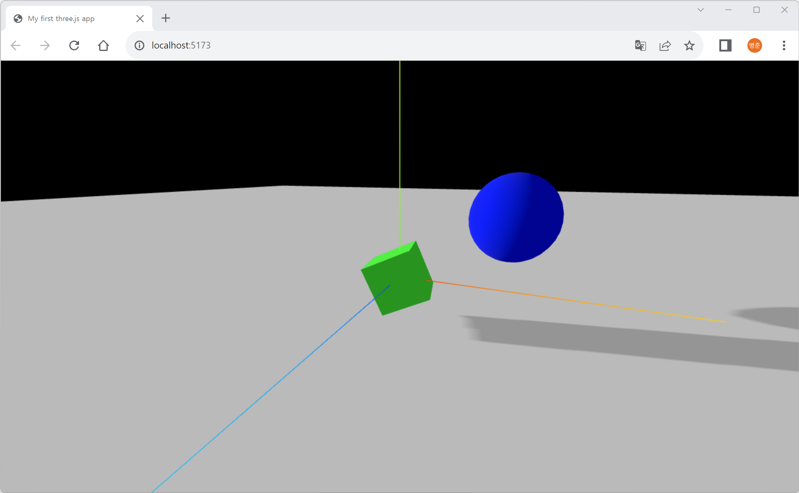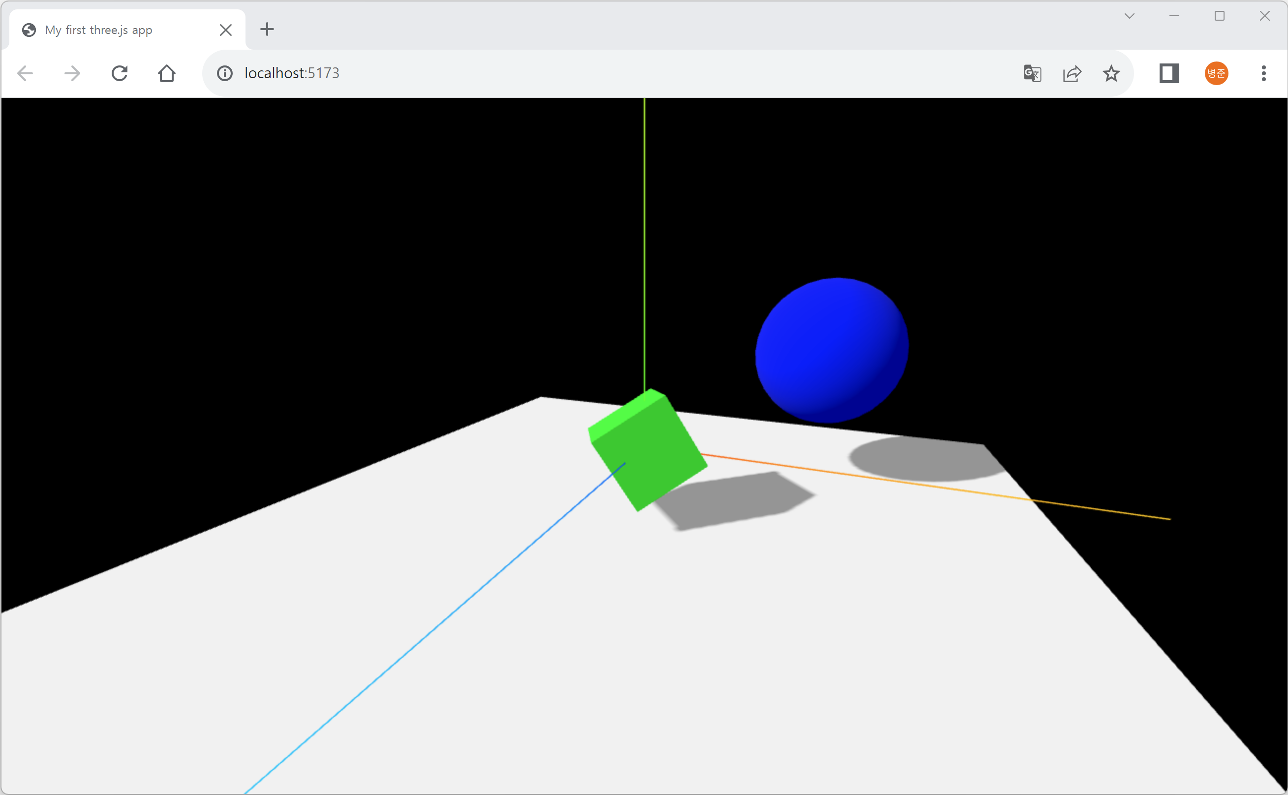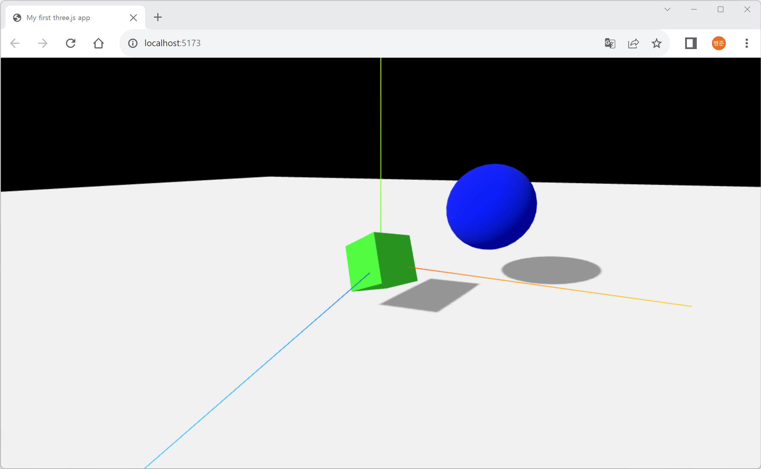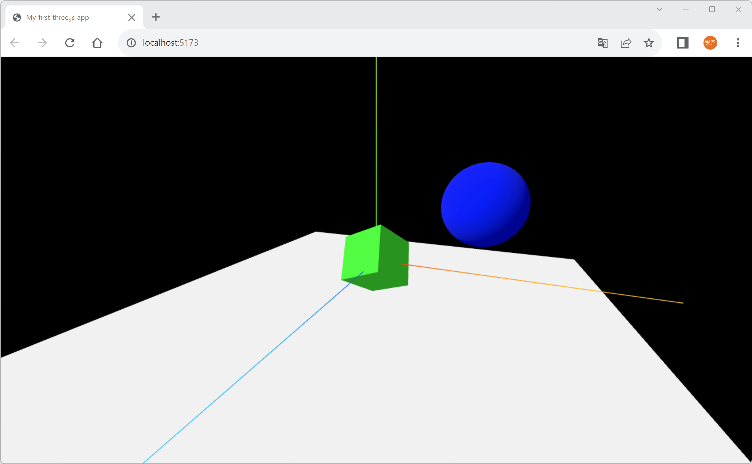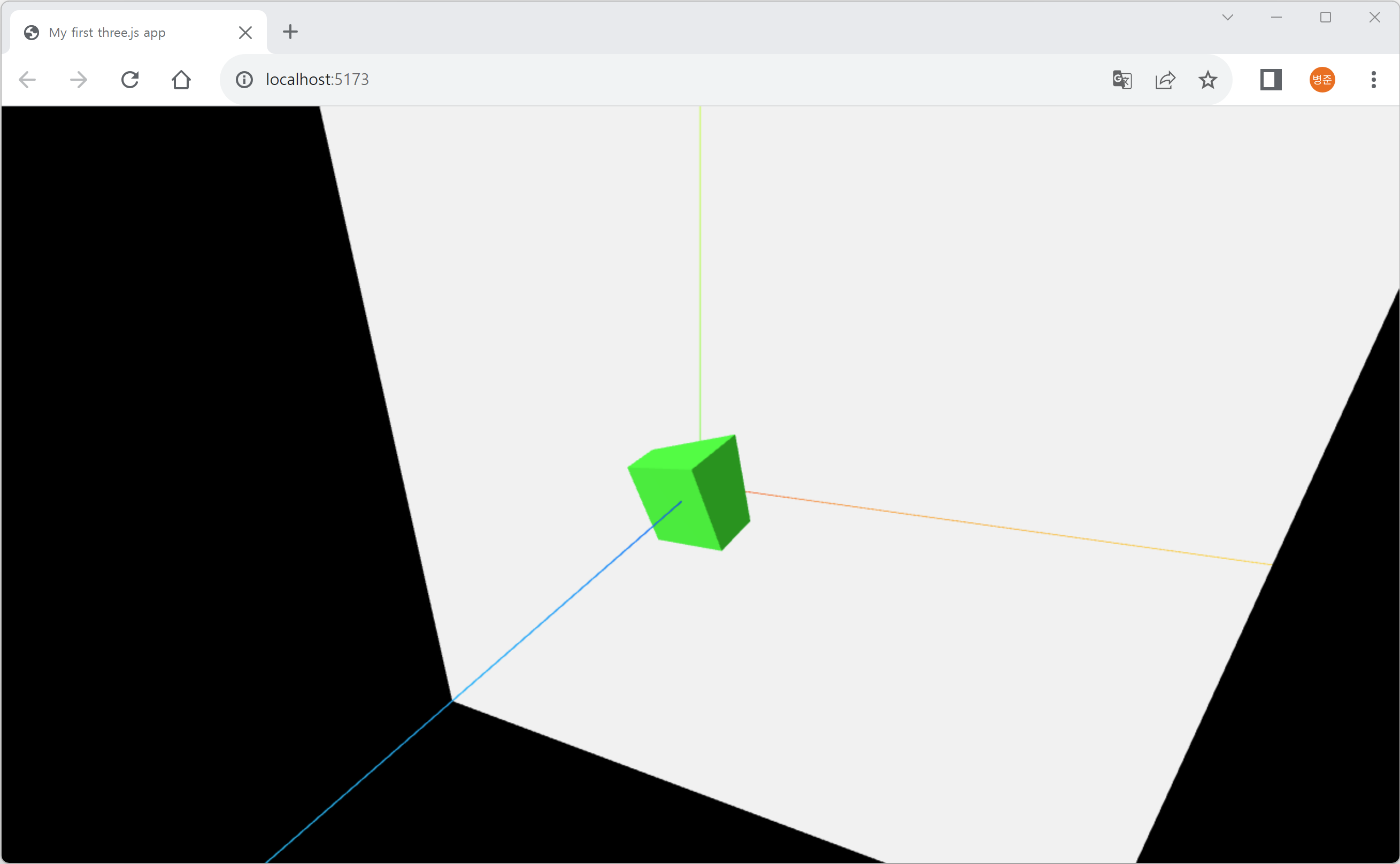 웹 브라우저에 평면 객체가 녹색의 육면체와 겹쳐 나오게 됩니다.