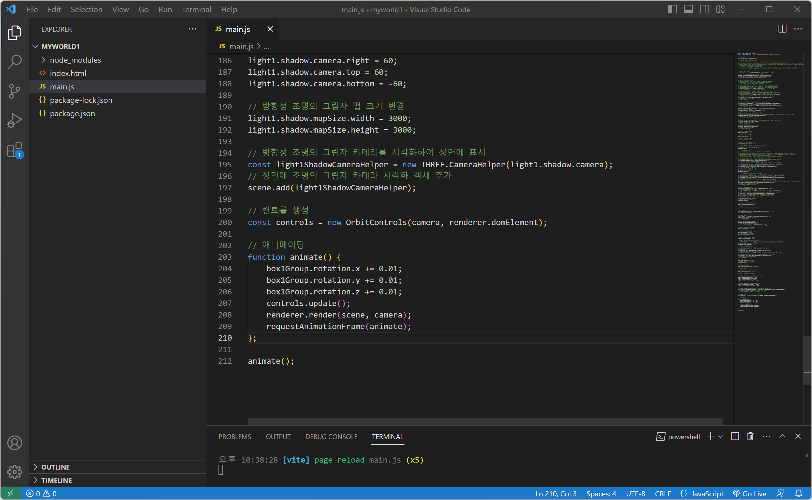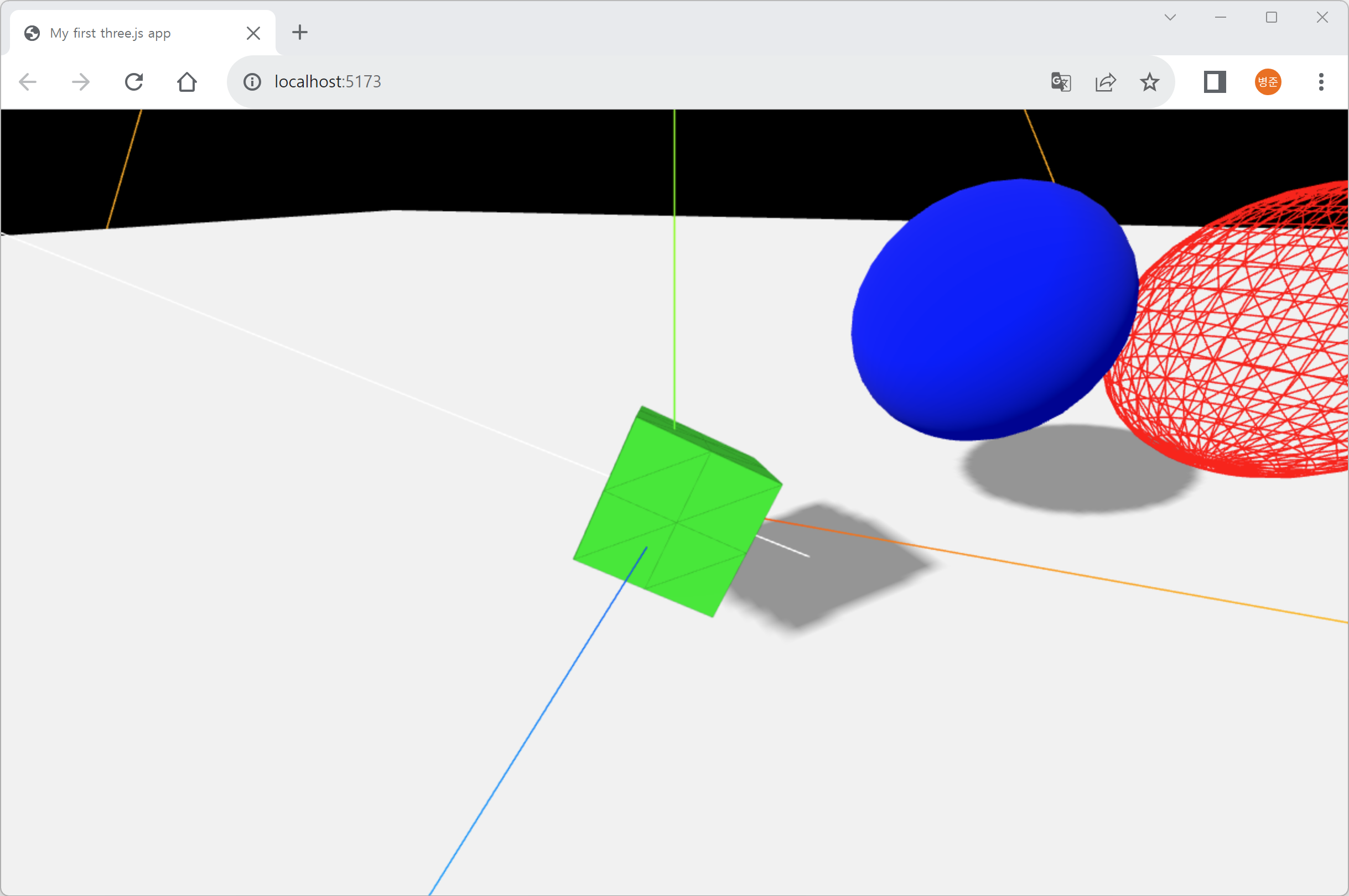 이제 three.js 사이트의 doc에 있는 예제처럼 보입니다.