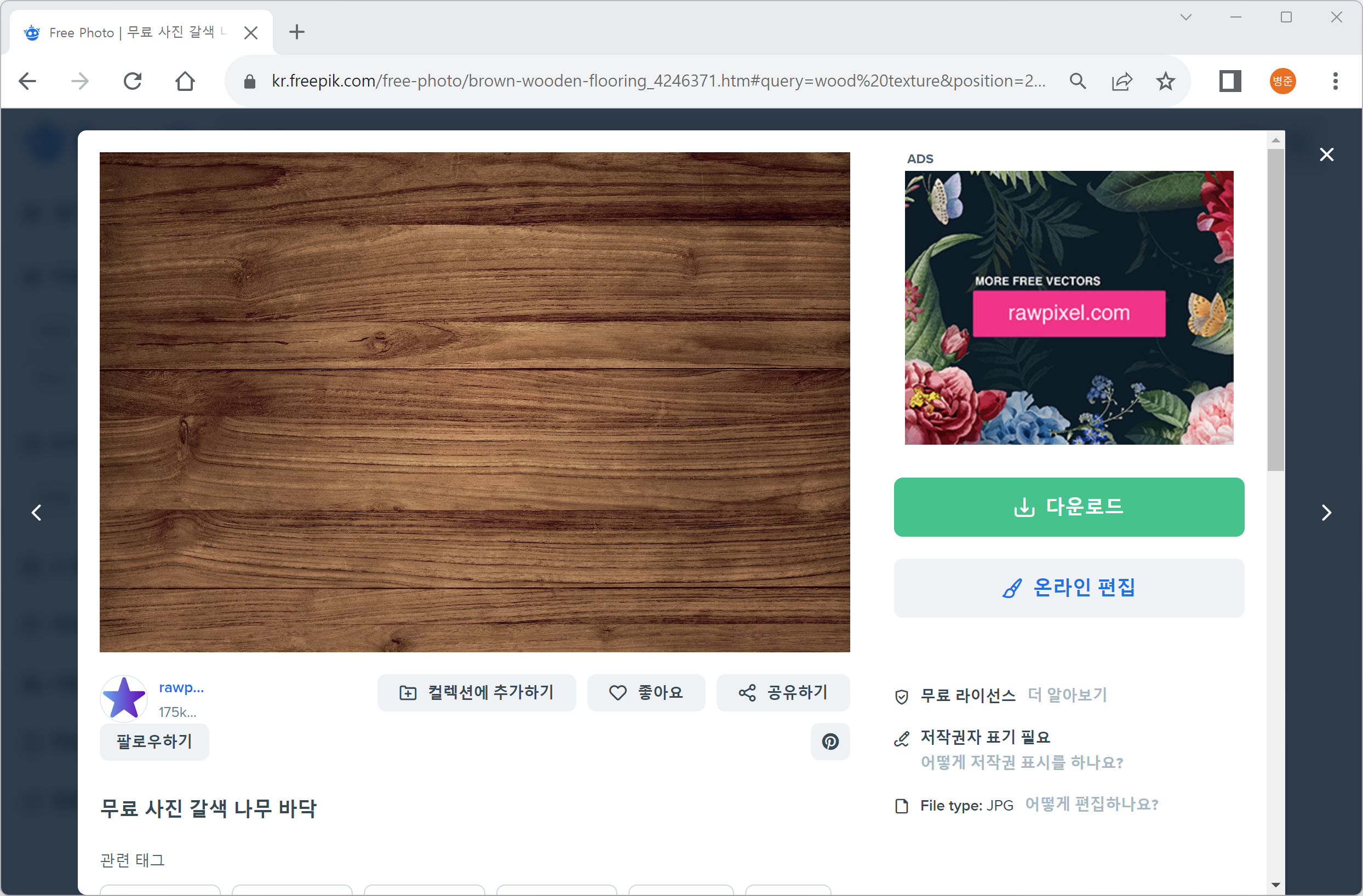 저는 나무 바닥 이미지를 Freepik 사이트에서 무료로 다운로드하였습니다.