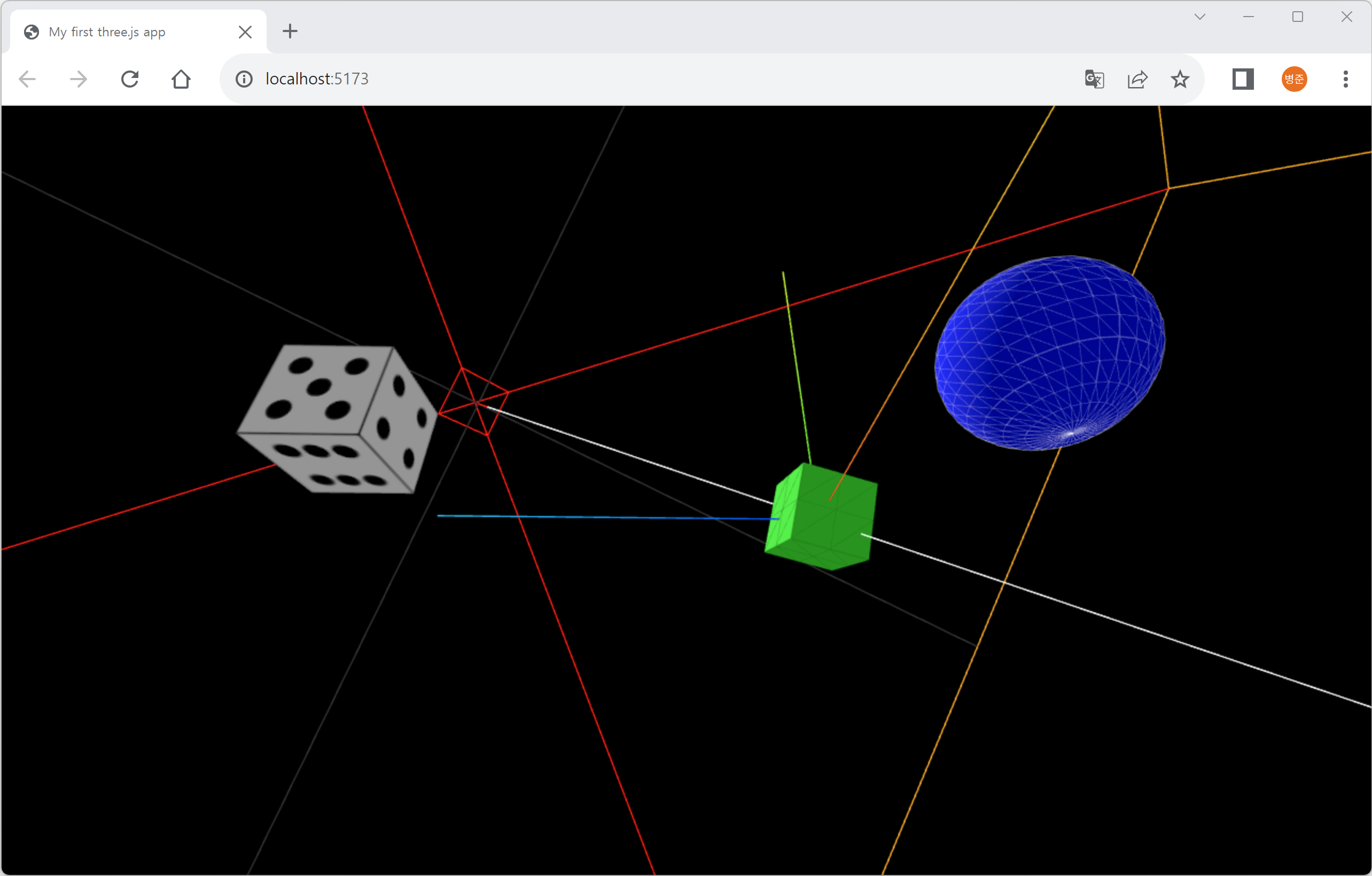 그러면 두 번째 육면체 객체의 모든 면이 주사위 이미지로 변경됩니다.