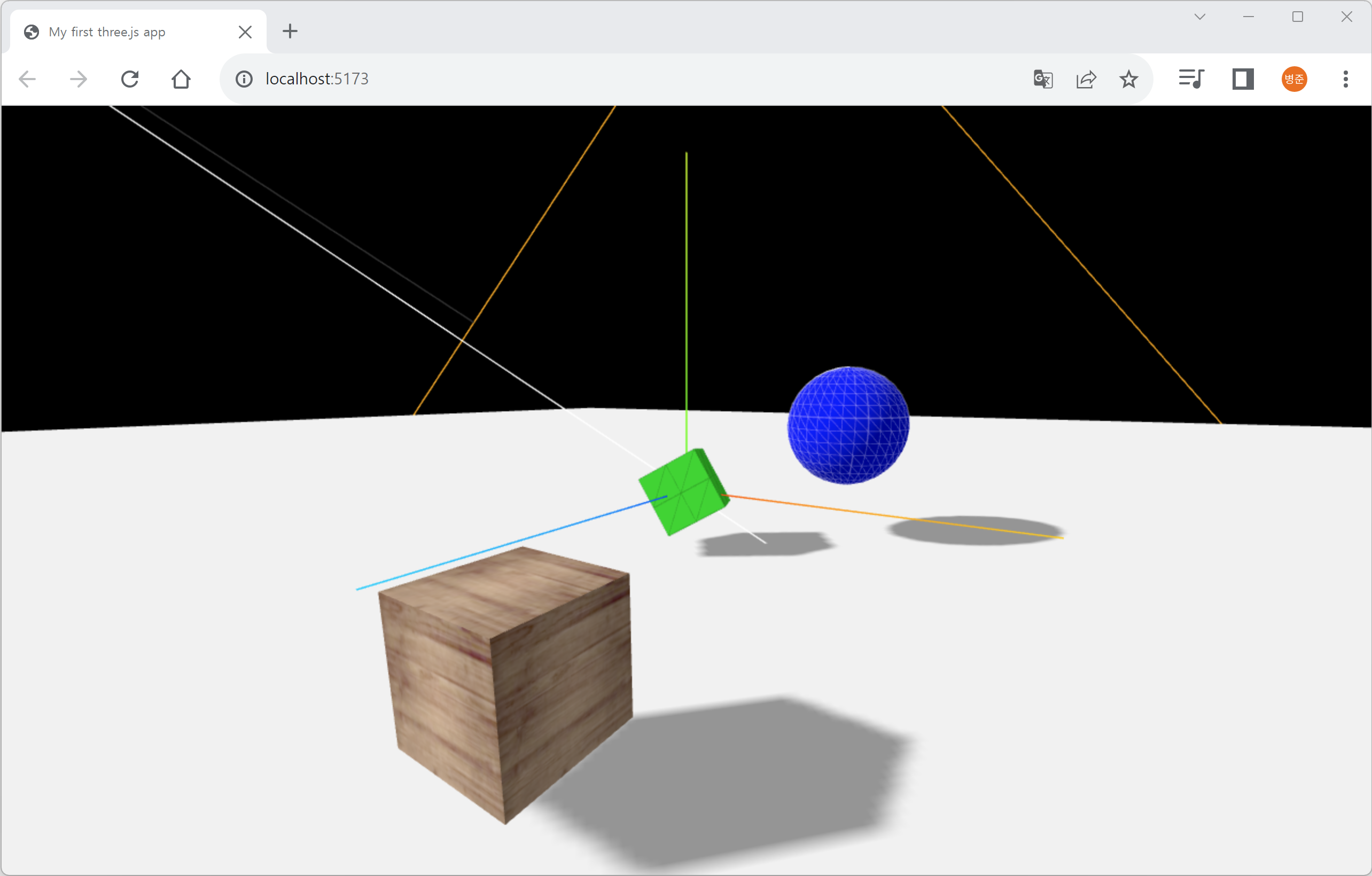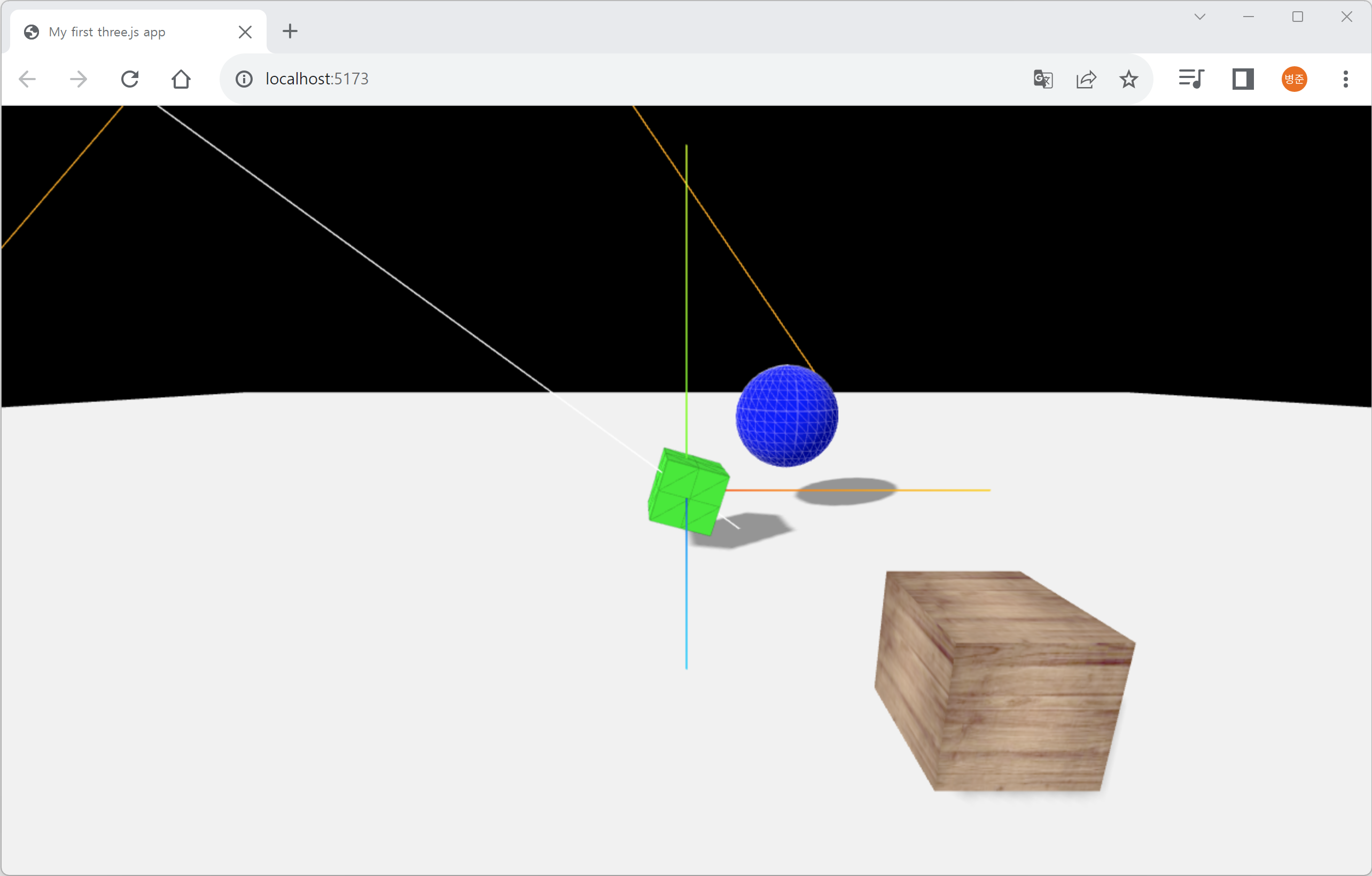 마우스로 이동해서 보시면 입체적으로 확인할 수 있습니다. 나무 바닥 이미지가 육면체 객체에 잘 어울립니다.