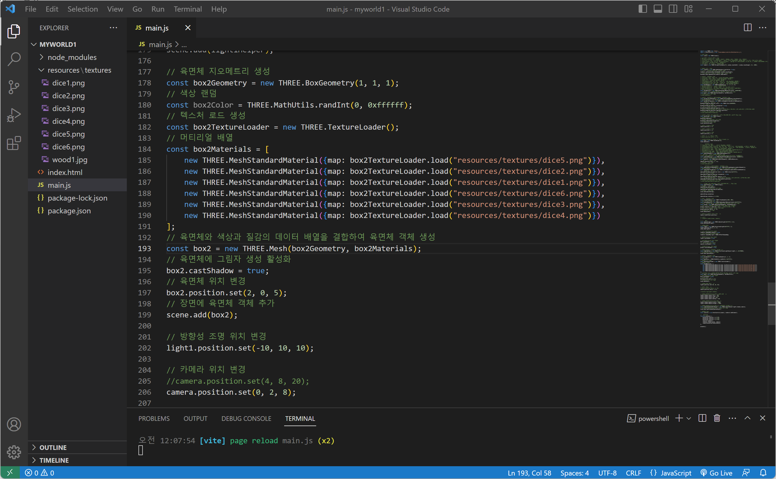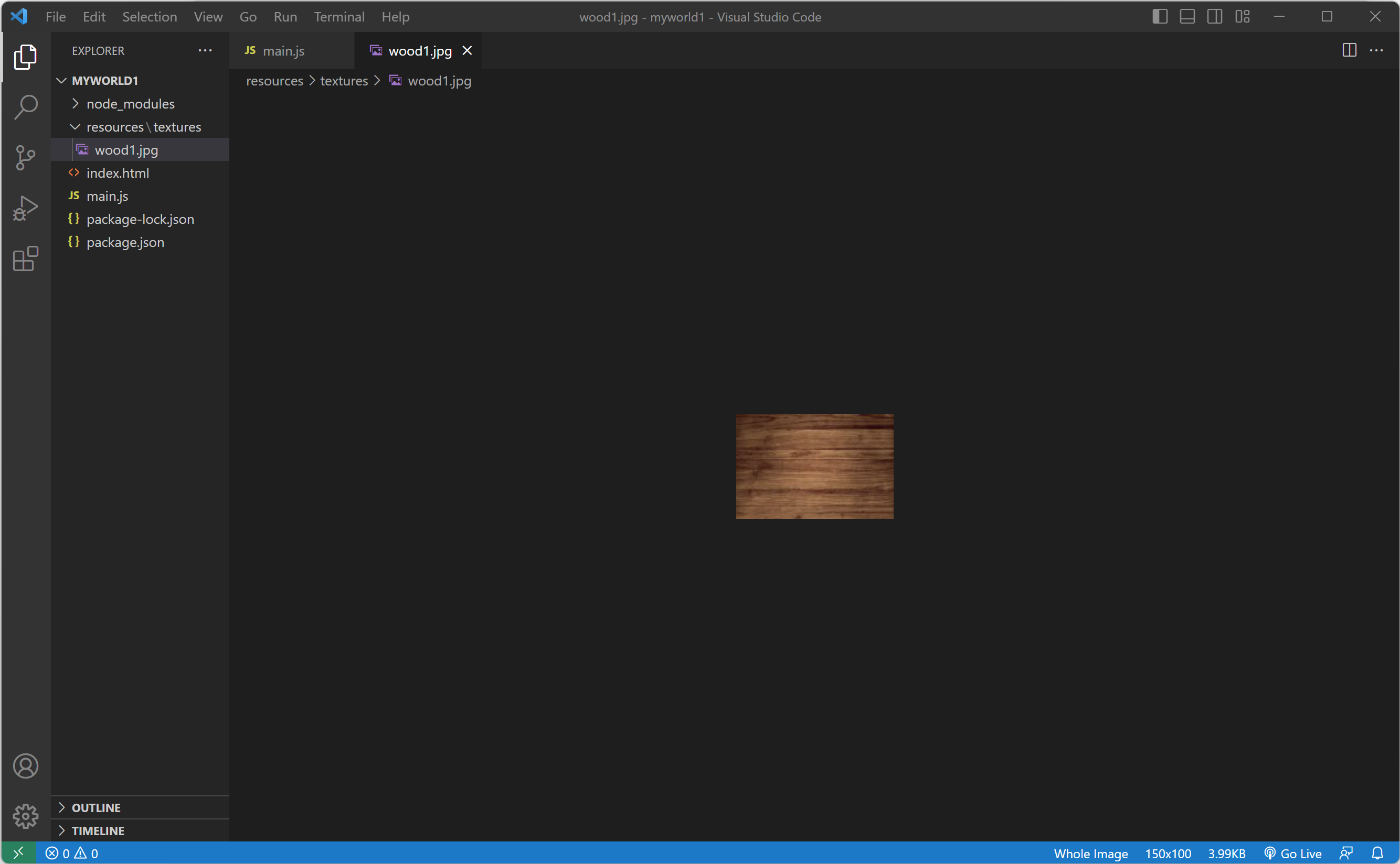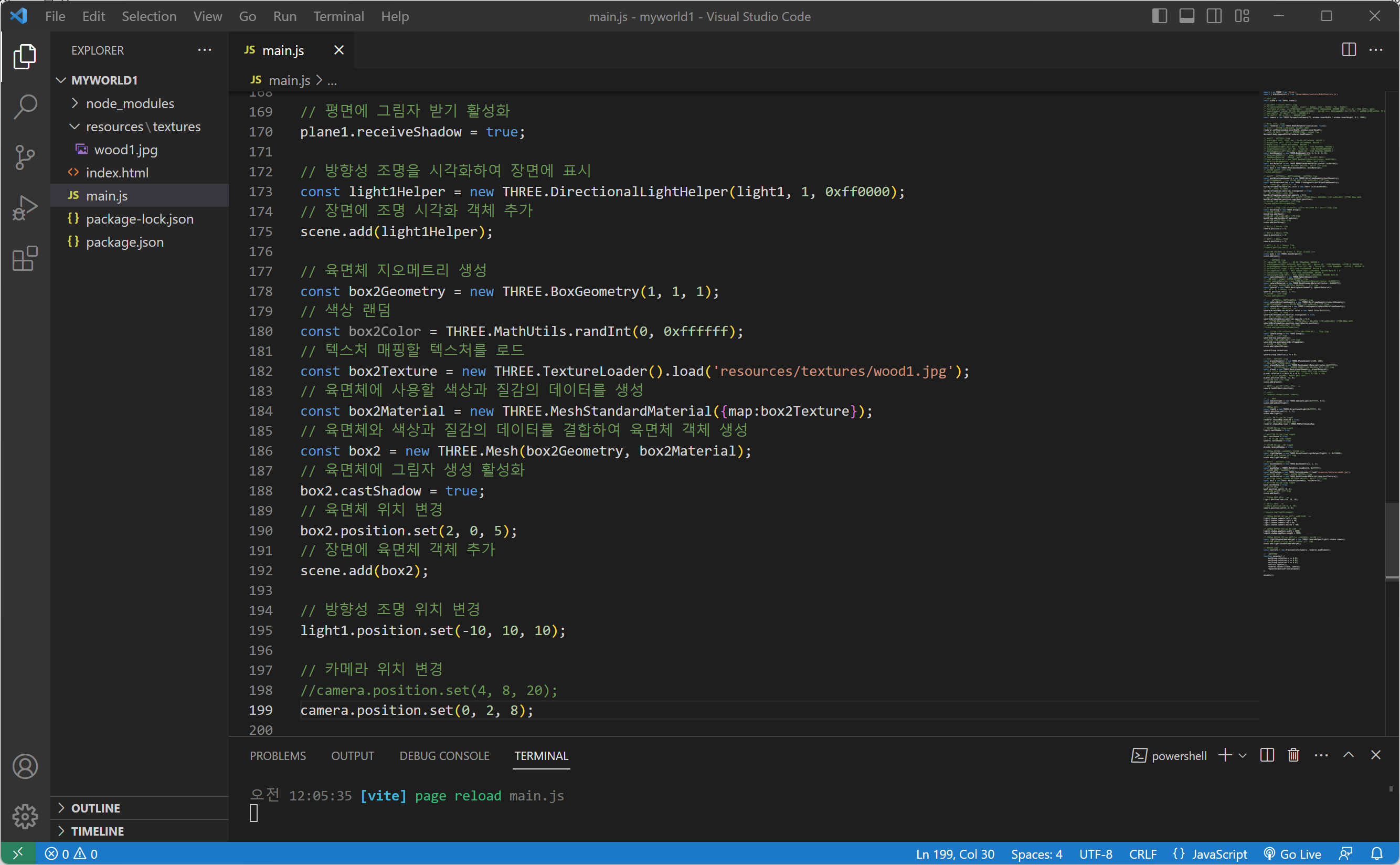 2. resources \ textures 폴더에 있는 나무 바닥 이미지 파일(wood1.jpg)을 TextureLoader(텍스처로더)로 로드합니다.