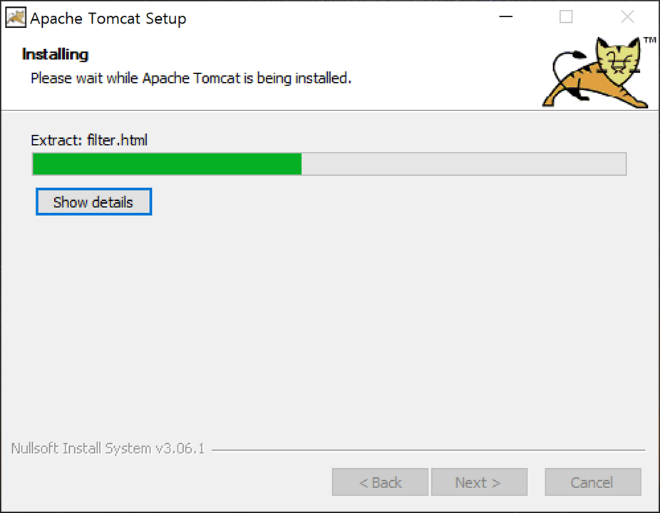 다운로드 폴더에서 "apache-tomcat-9.0.43.exe"를 더블 클릭하여 실행합니다.