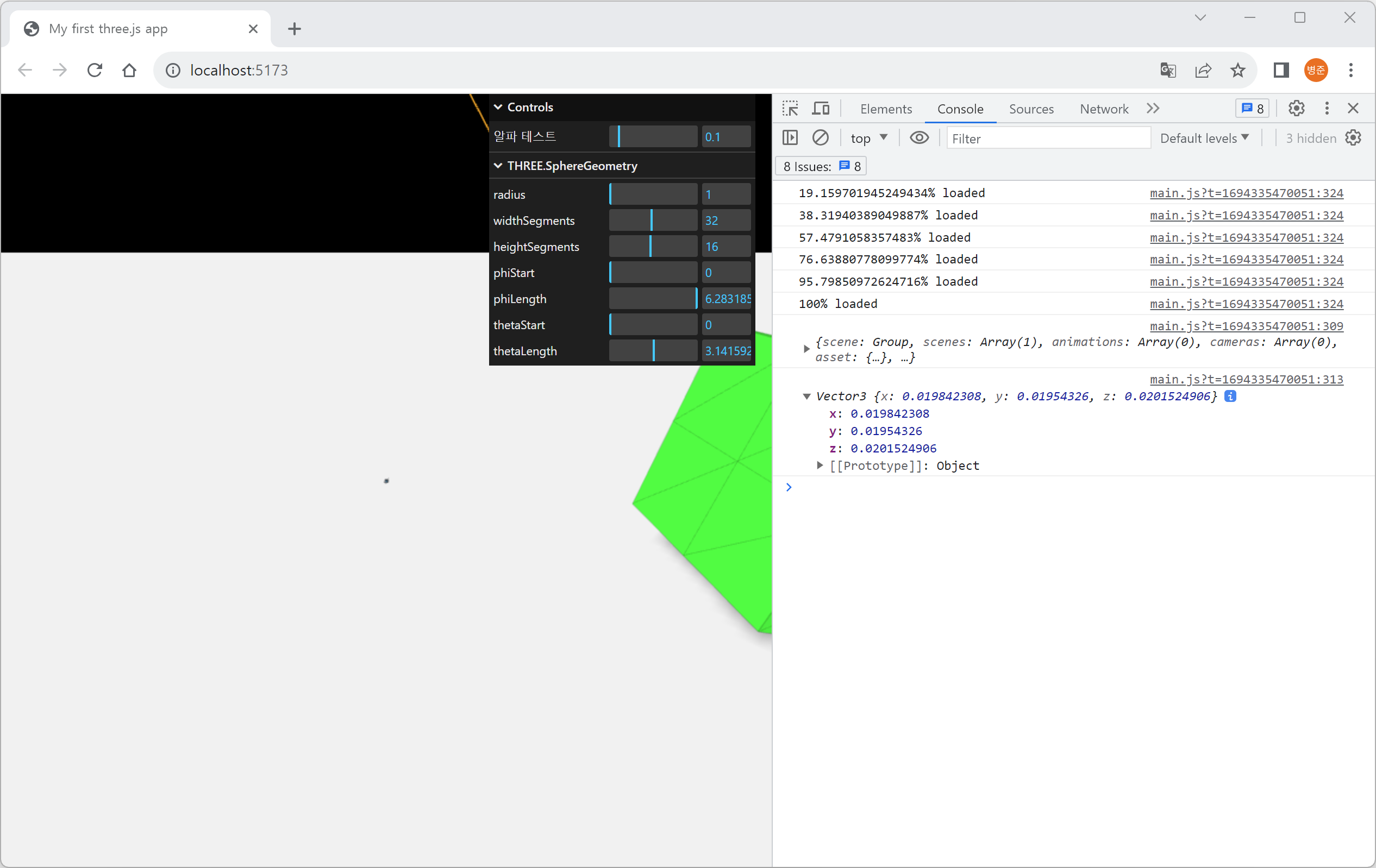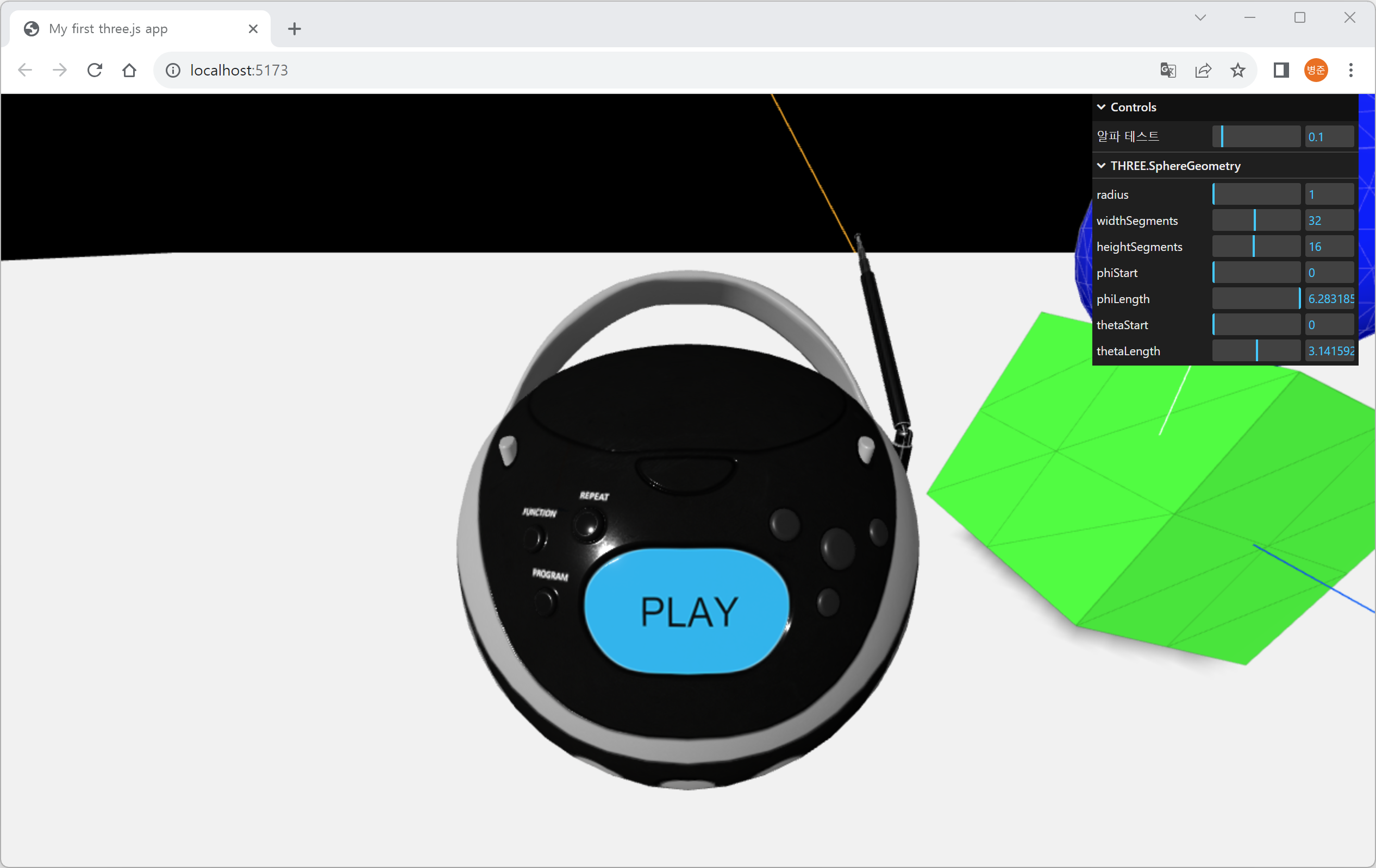 | three.js GUI Controls - lil-gui, addFolder, geometry.dispose (0) | 2023.08.27 |