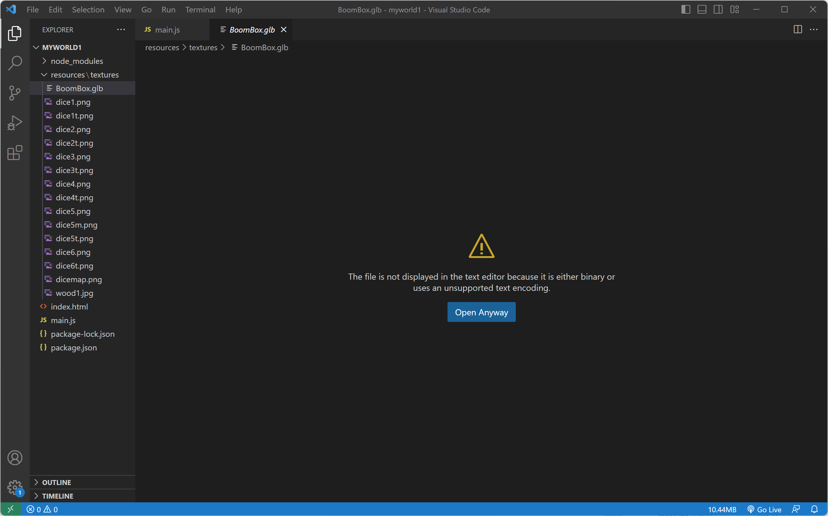 VSCode에서는 glTF 파일을 볼 수 없습니다.