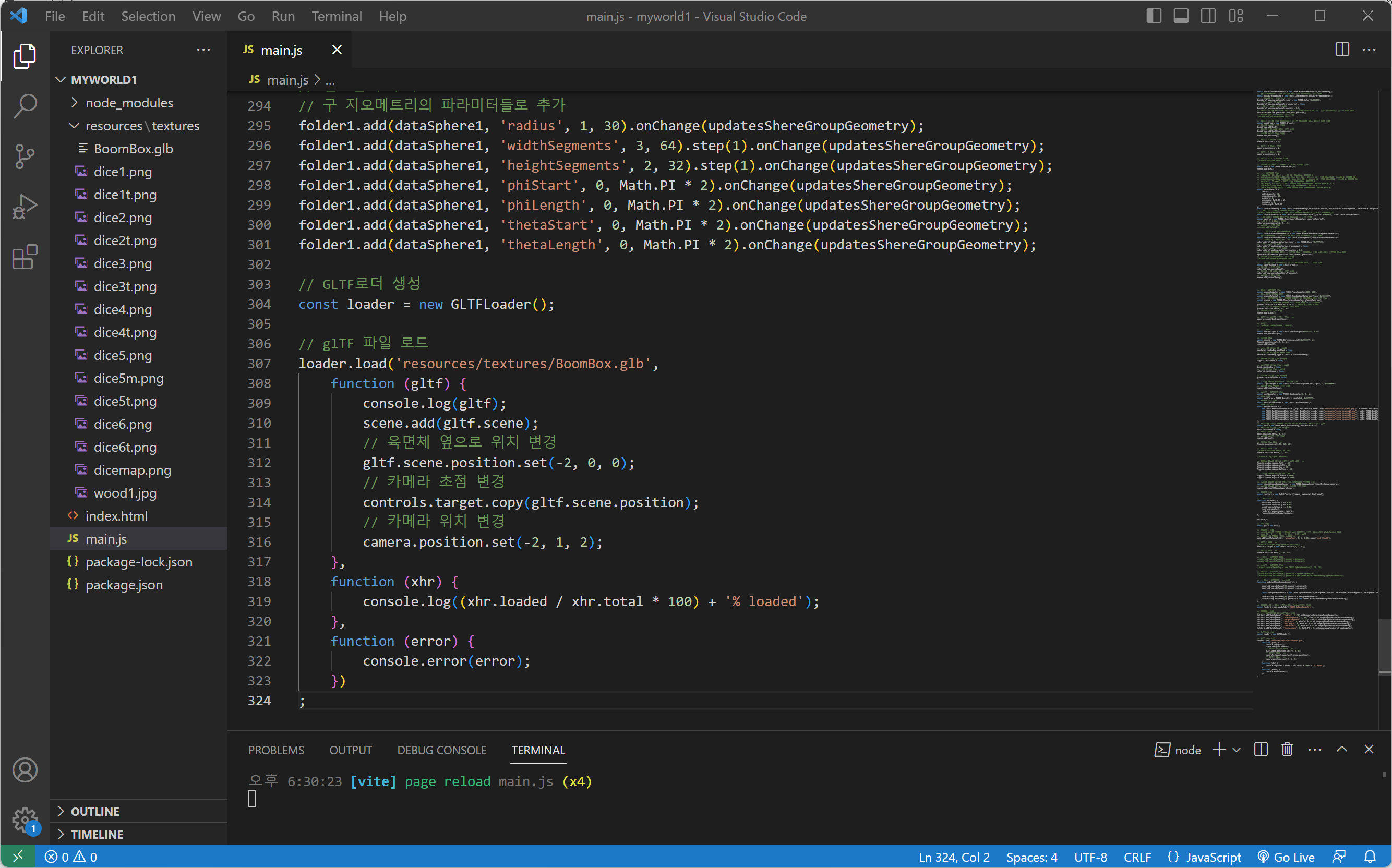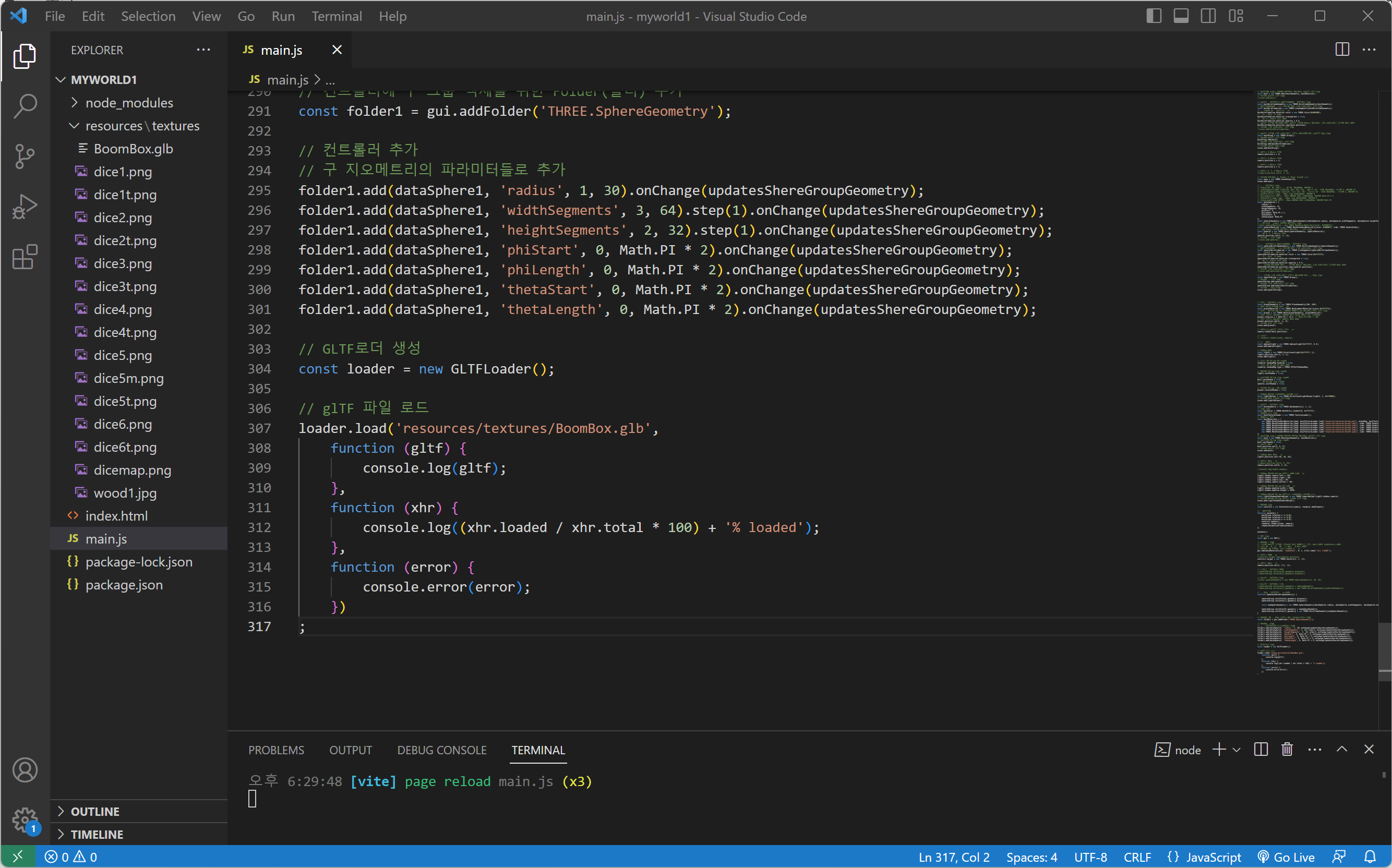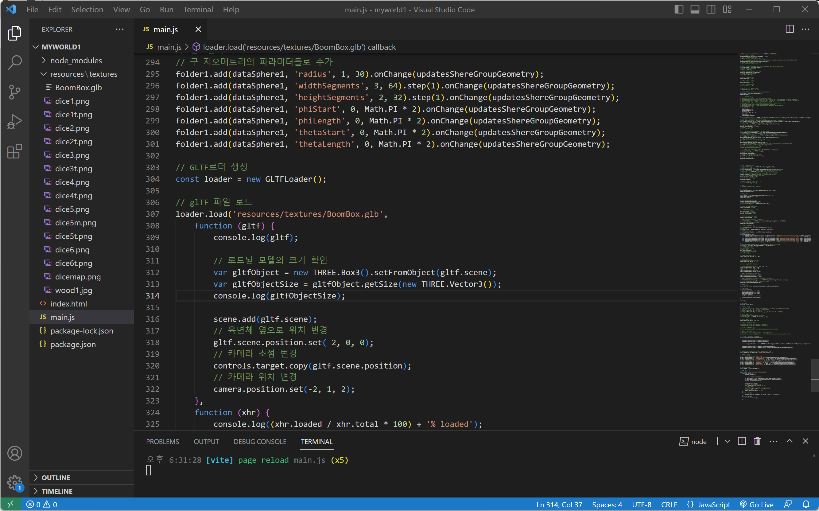 4. resources \ textures 폴더에 있는 BoomBox 파일(BoomBox.glb)을 GLTFLoader(GLTF로더)로 로드합니다.