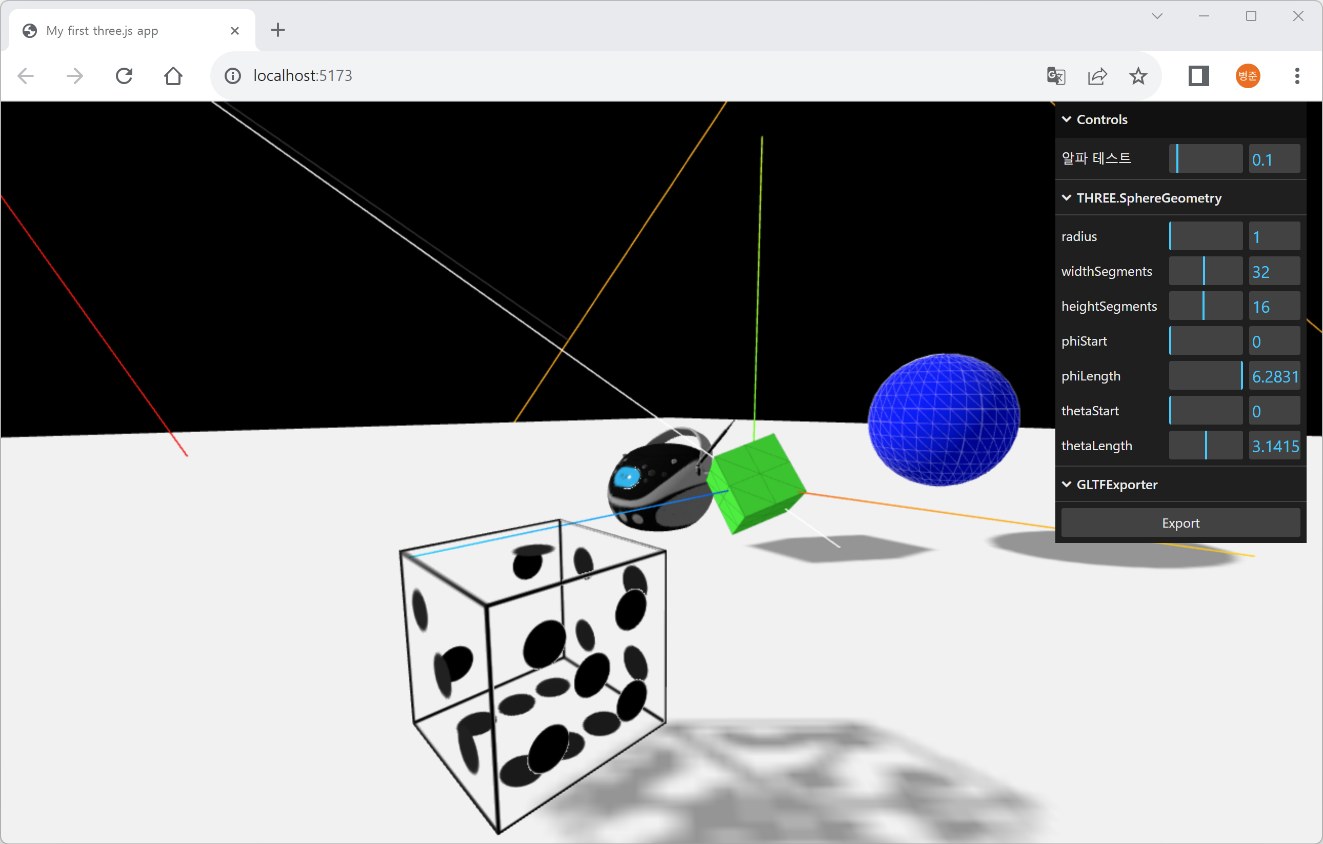 | three.js GUI Controls - lil-gui, addFolder, geometry.dispose (0) | 2023.08.27 |