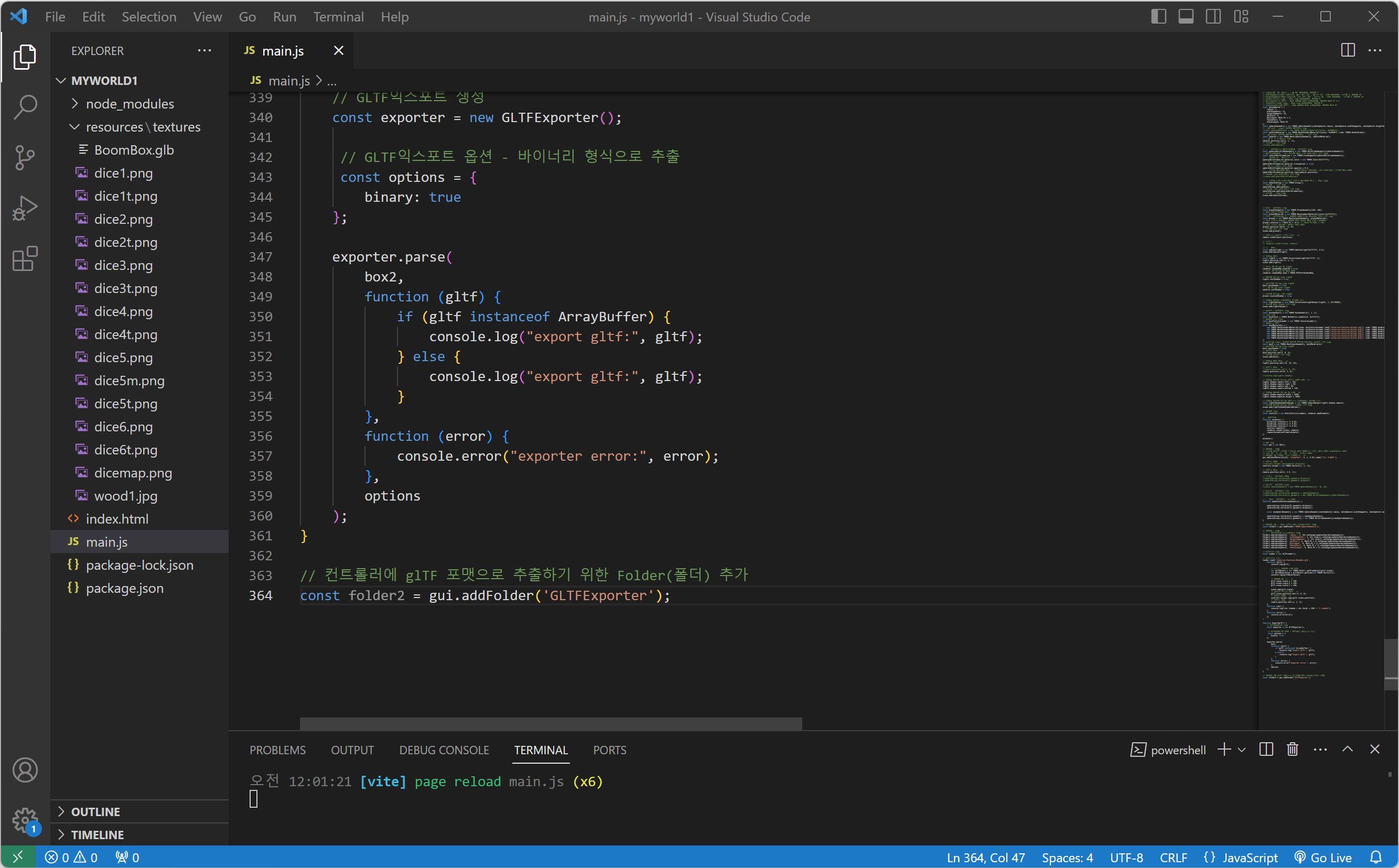 | three.js 3D 모델을 glTF 파일로 다운로드하기(.glb or .gltf) (0) | 2023.10.29 |