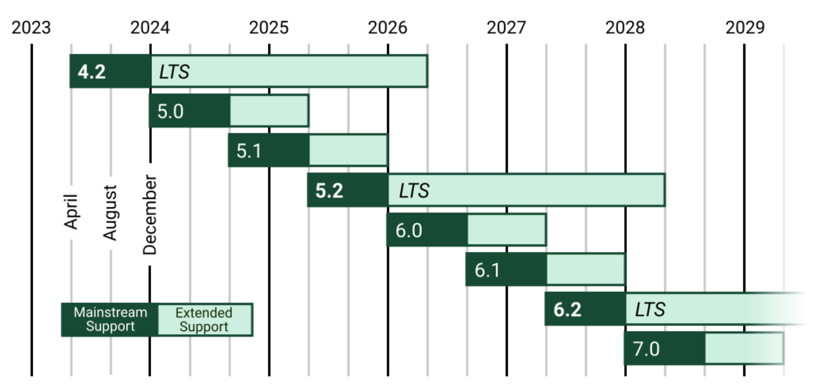 장고는 다음처럼 버전에 대한 지원 연도를 알려주고 있습니다.