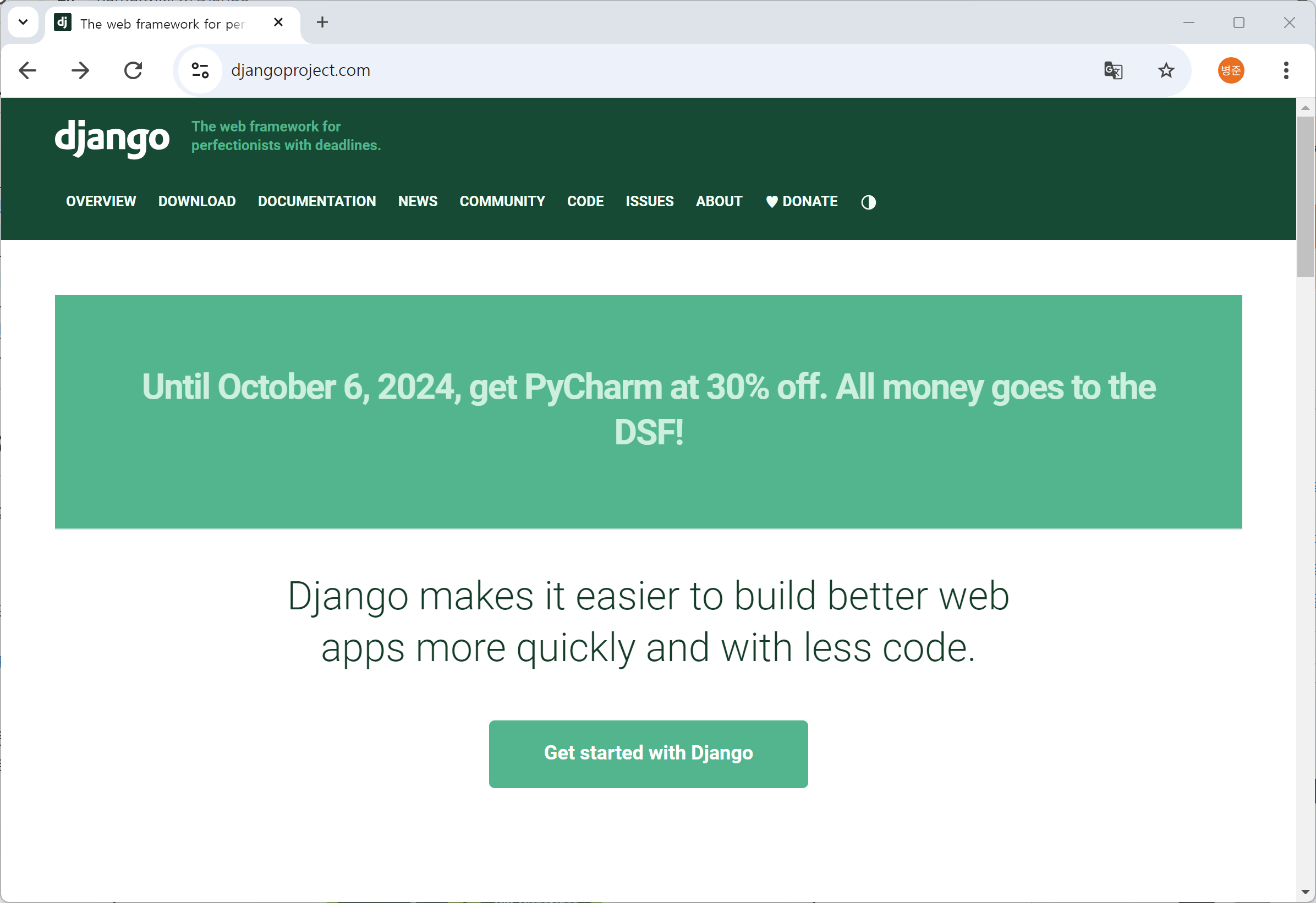 더 자세한 내용 장고 사이트를 참고하시기 바랍니다. (https://www.djangoproject.com/download/)
