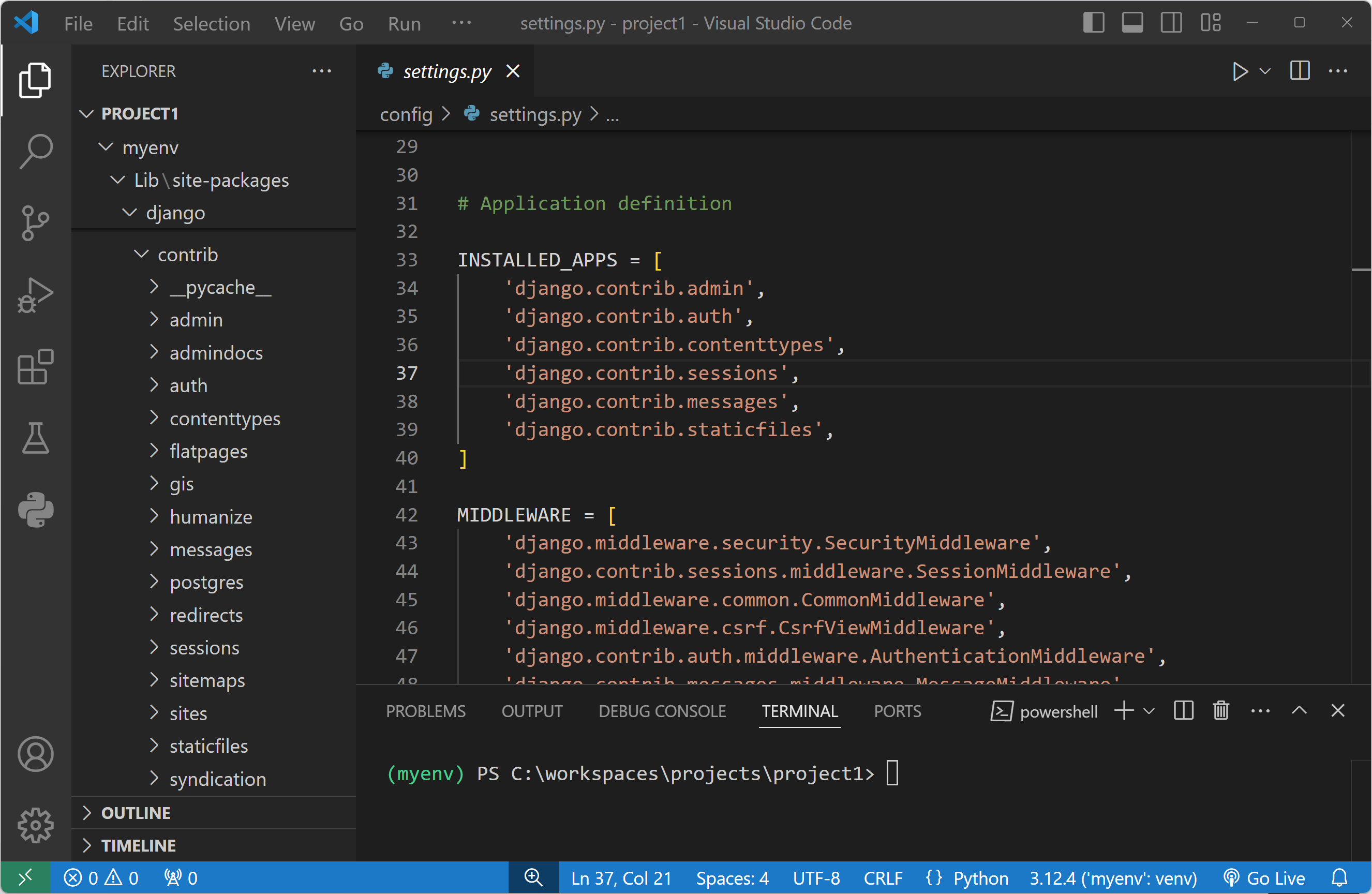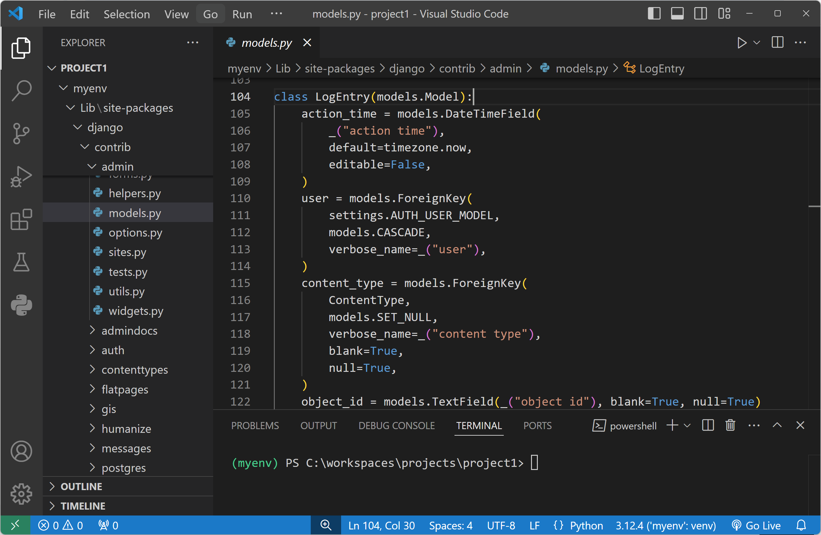 관리자 앱들은 myenv(가상환경) > Lib > site-packages > django > contrib 폴더에 있습니다.
