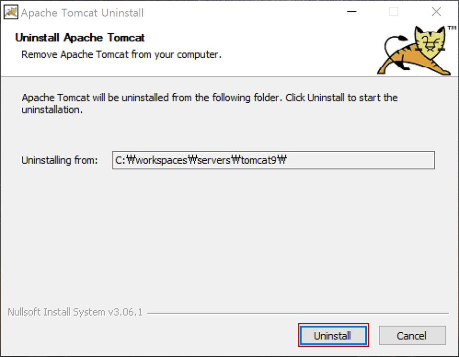 3. "Apache Tomcat Uninstaller"이 실행됩니다.