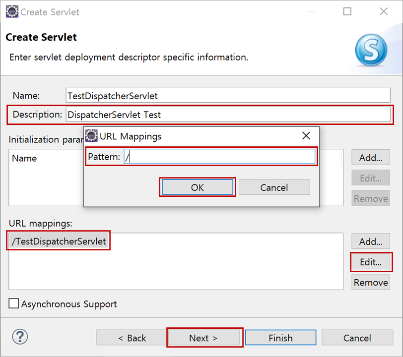 "Description"은 "DispatcherServlet Test"을 입력합니다.