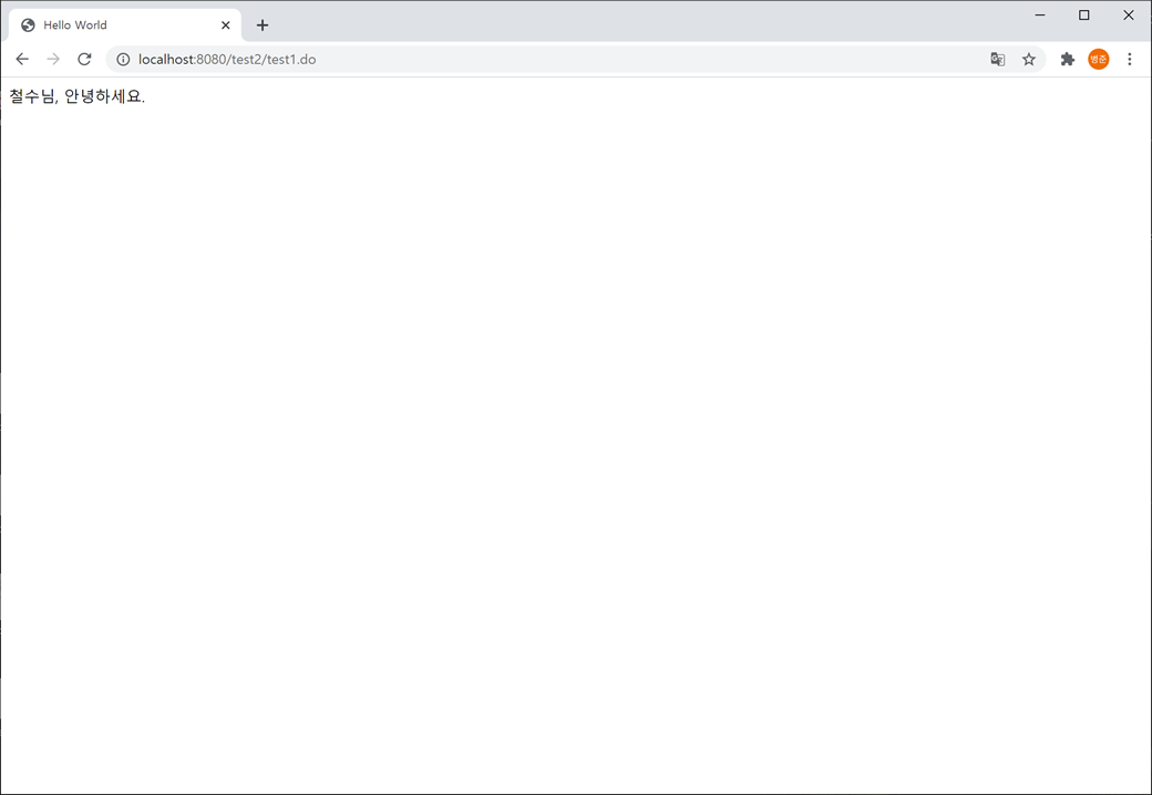 "TestService1.java"의 "process"에서 적용한 "철수"가 출력됩니다.