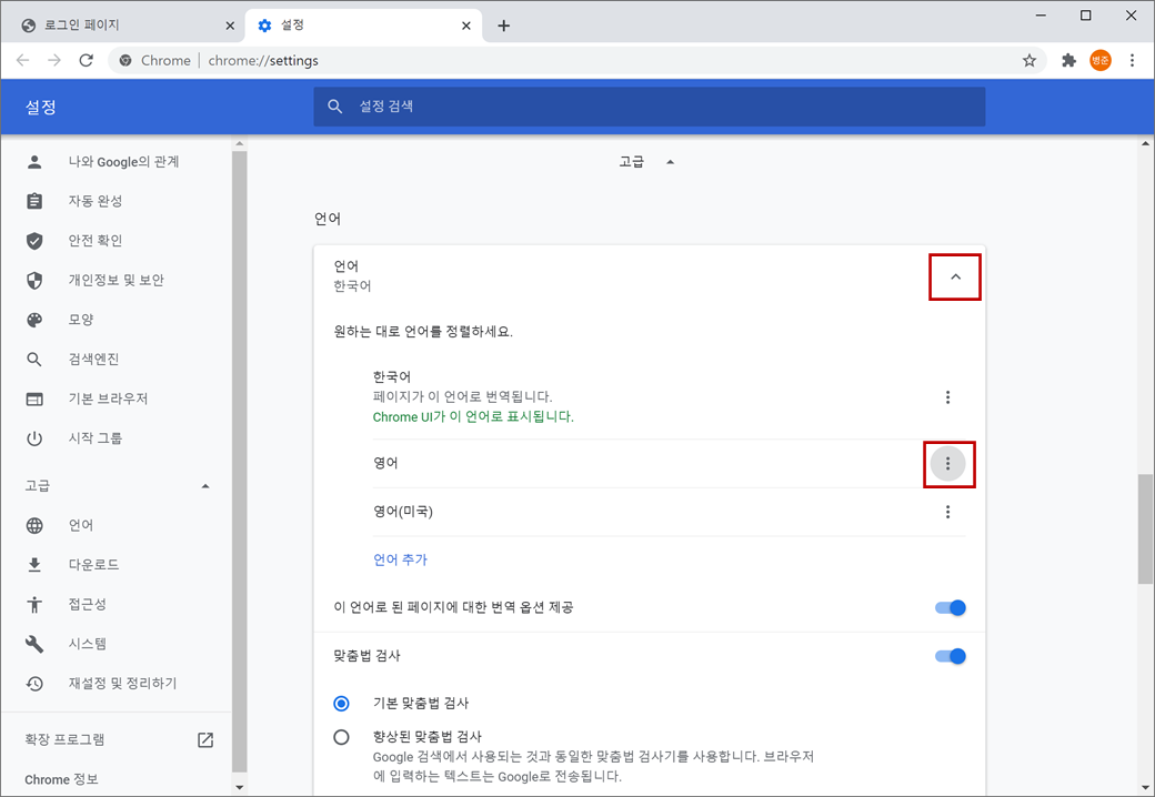 다시 웹 브라우저의 언어권을 변경하겠습니다.