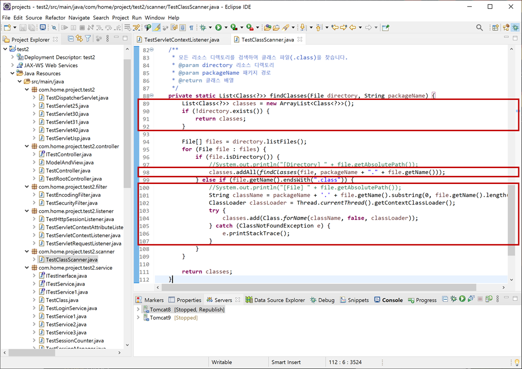 "findClasses"메소드 전체 소스입니다.