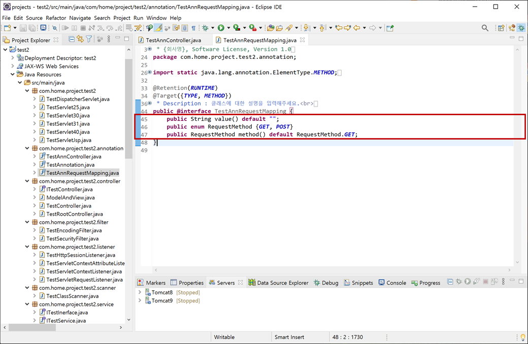 "test2"메소드도 같은 방식으로 추가합니다.