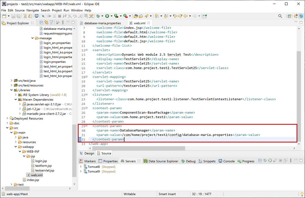 <param-value>/com/home/project/test2/config/database-maria.properties</param-value>