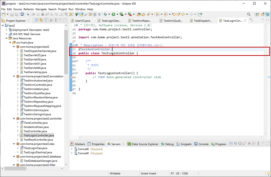 "TestLoginController.java"클래스 위에 "@TestAnnController"어노테이션(Annotation)를 추가합니다.